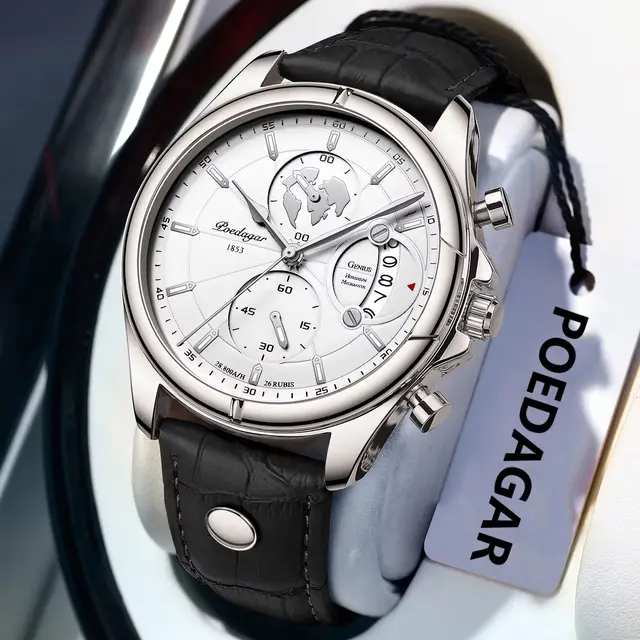 POEDAGAR Luxury Man Watch Chronograph Date Stainless Steel Sport Men Wristwatch Waterproof Luminous Fashion Quartz Men's Watches