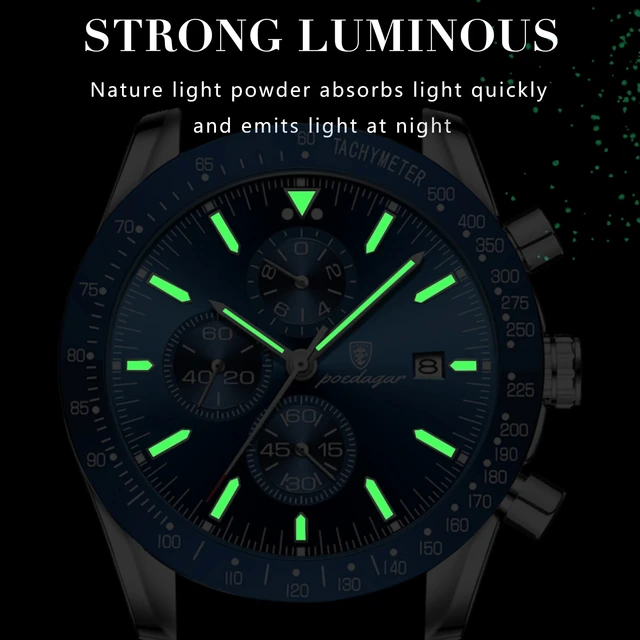 POEDAGAR Luxury Men Chronograph Watch High Quality Fashion Waterproof Date Stainless Steel Quartz Watch