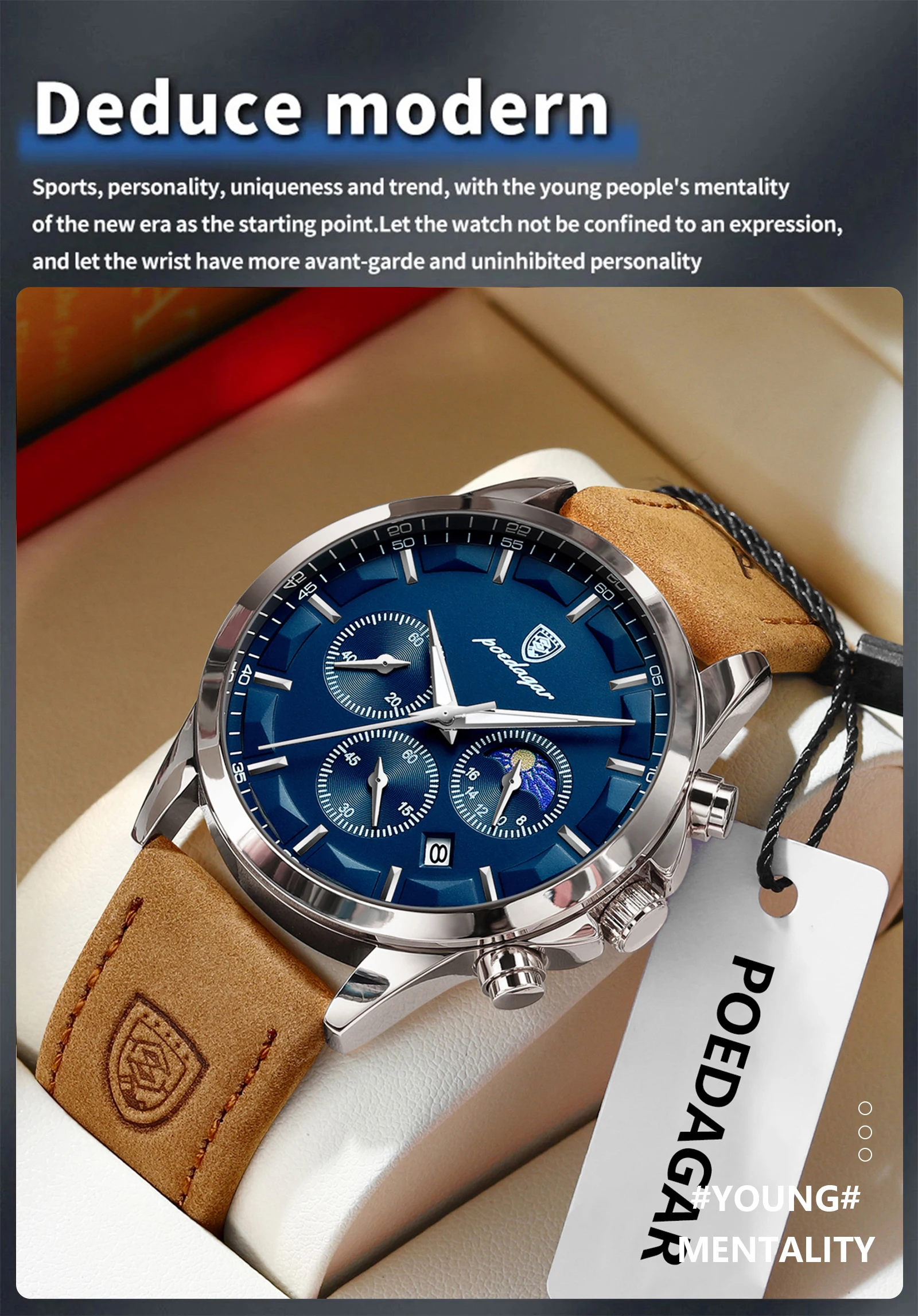 POEDAGAR Fashion Brand Men Watch Waterproof Stainless Steel Luminous Men's Watches Chronograph Date Quartz Sport Man Watch Reloj