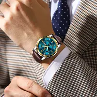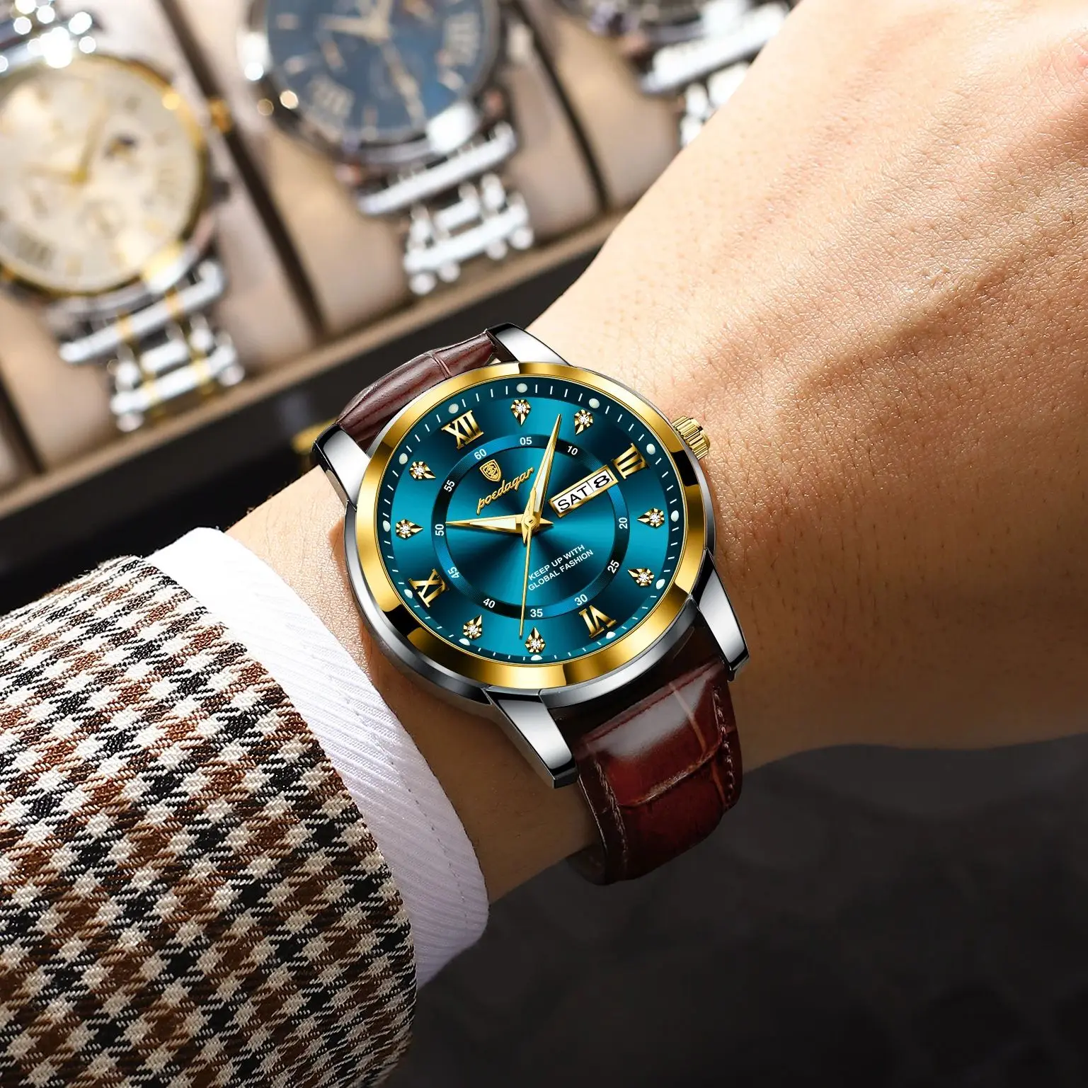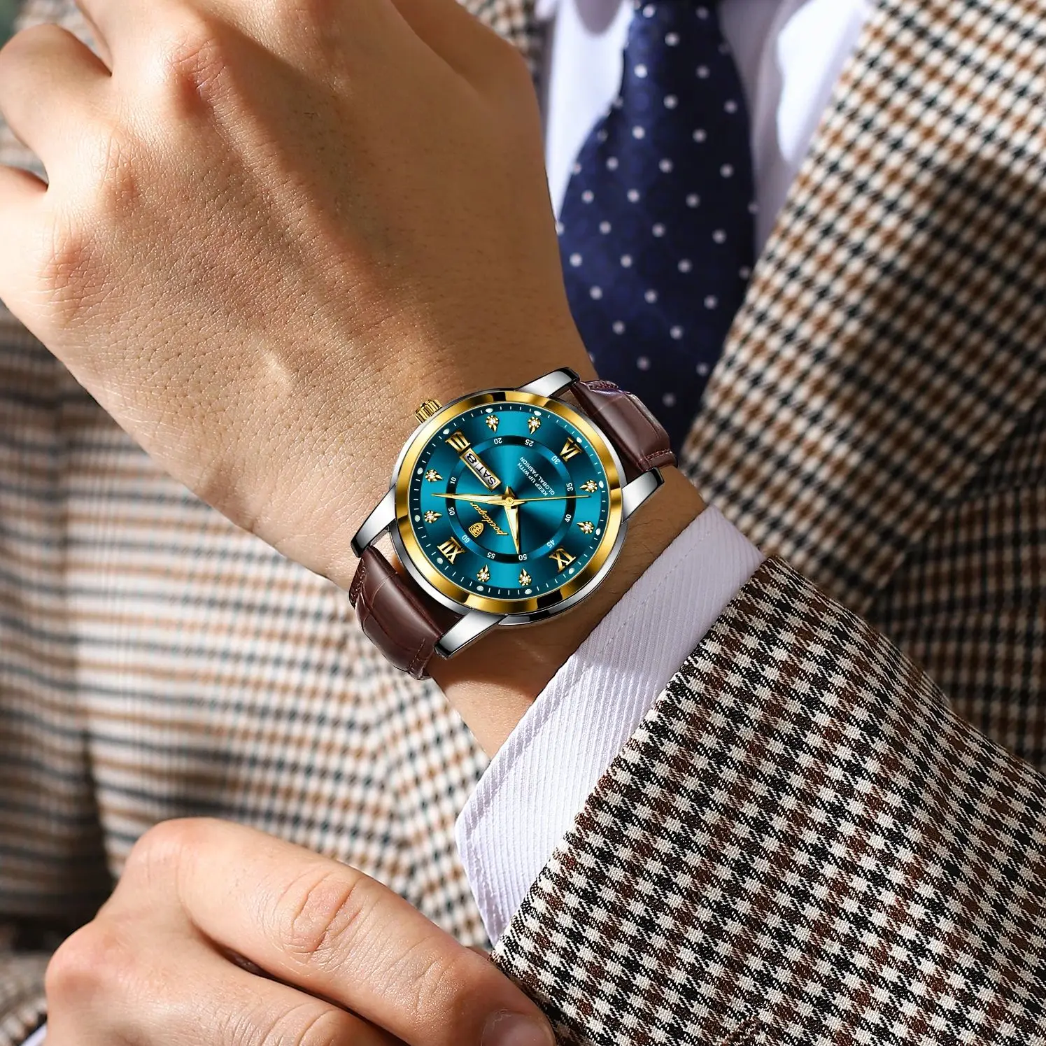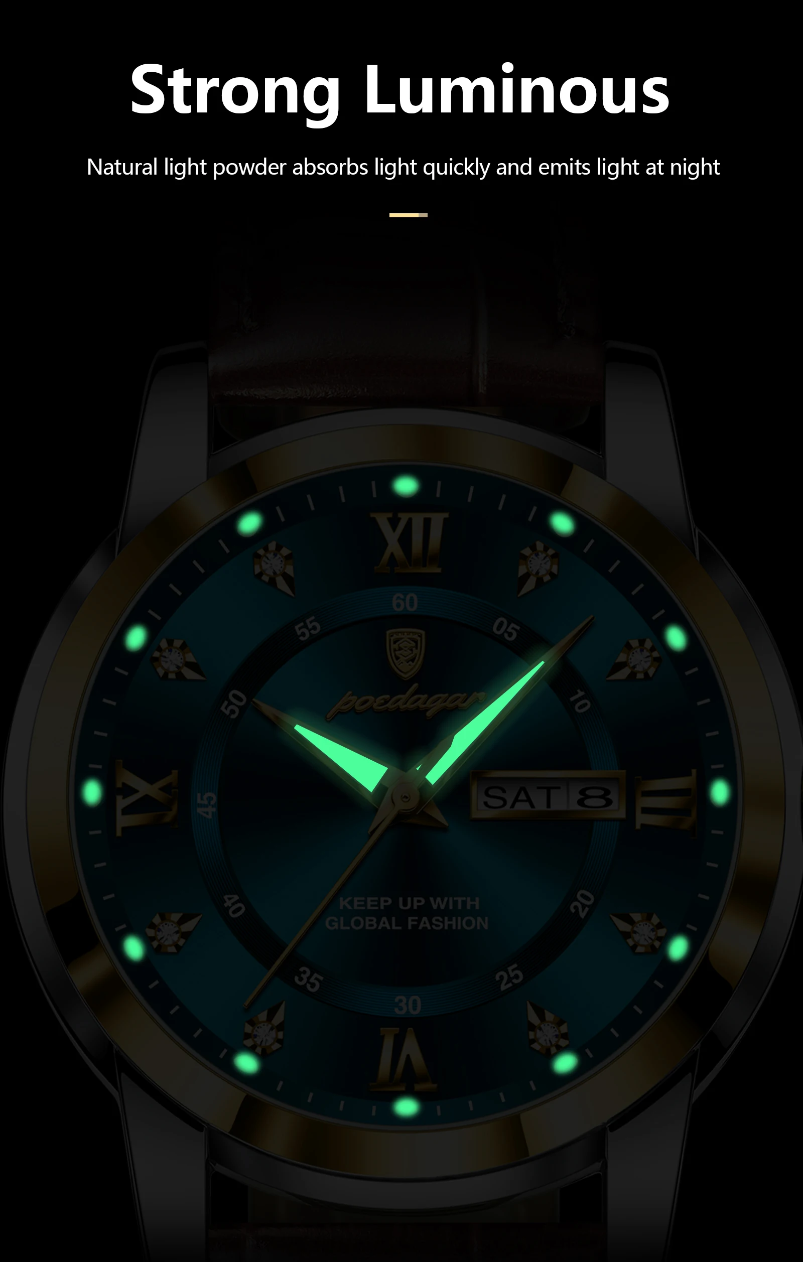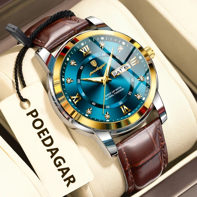 POEDAGAR Original Business Male Watch Waterproof Luminous Leather Men’s Wristwatch Date Week Luxury