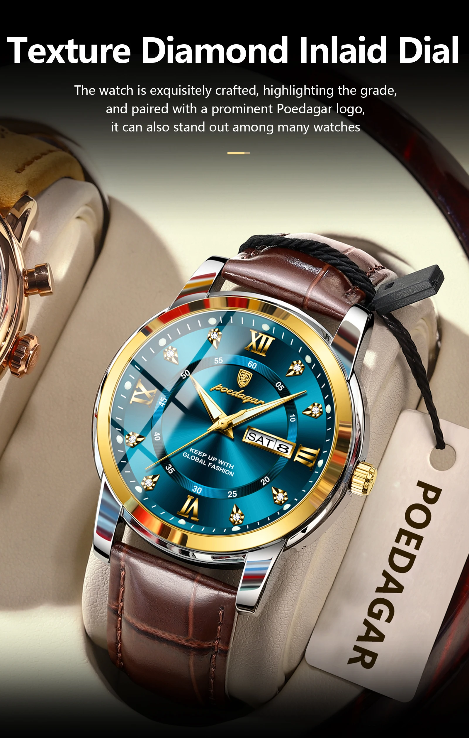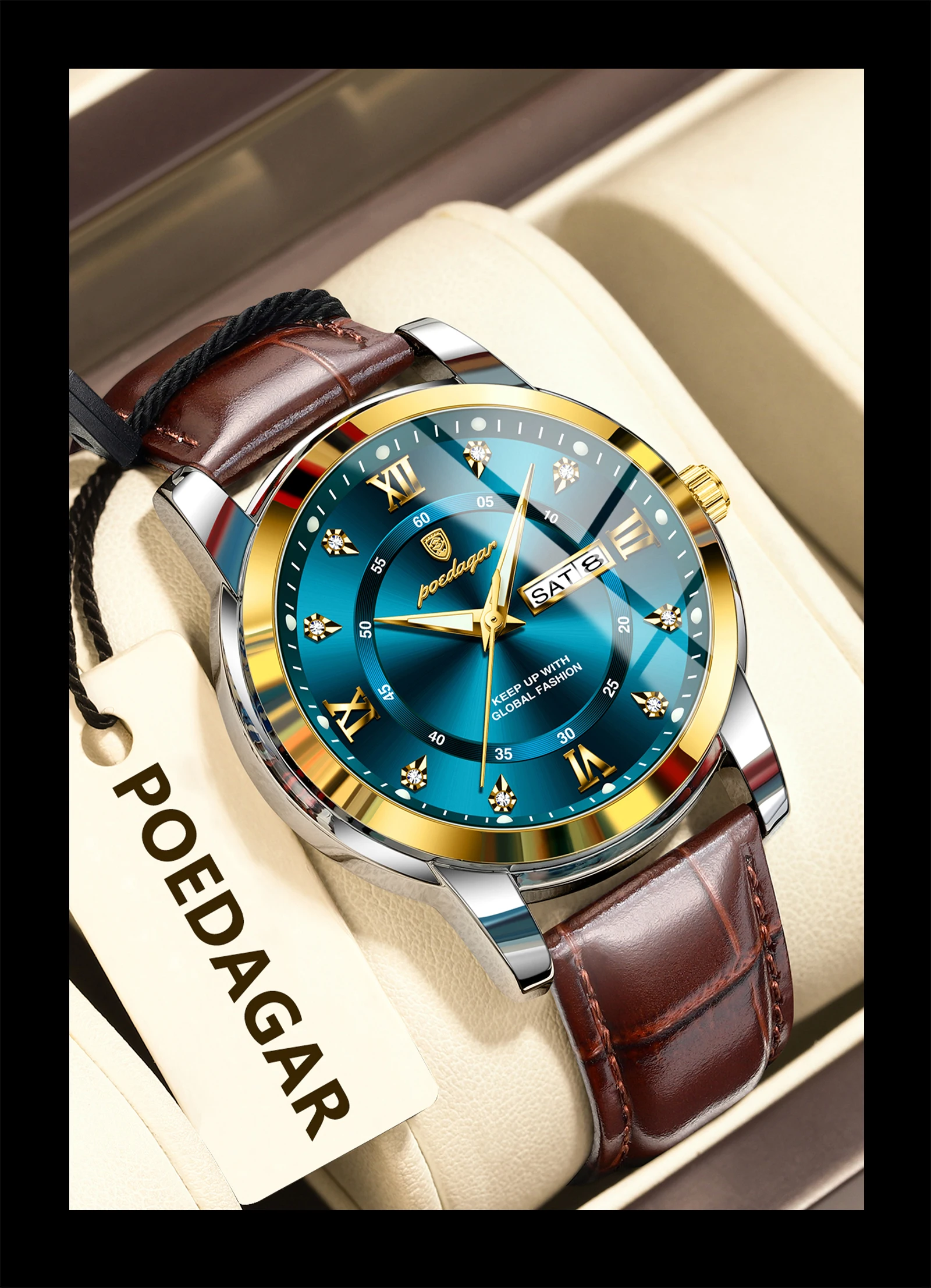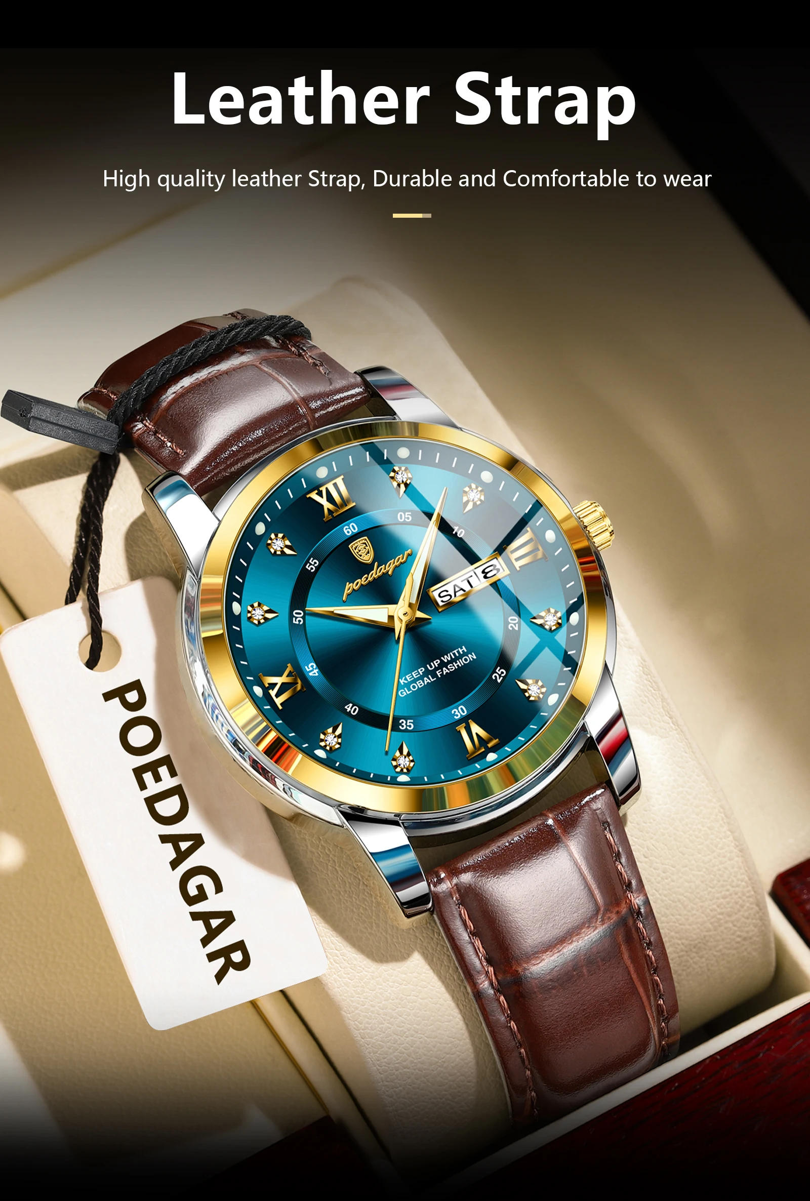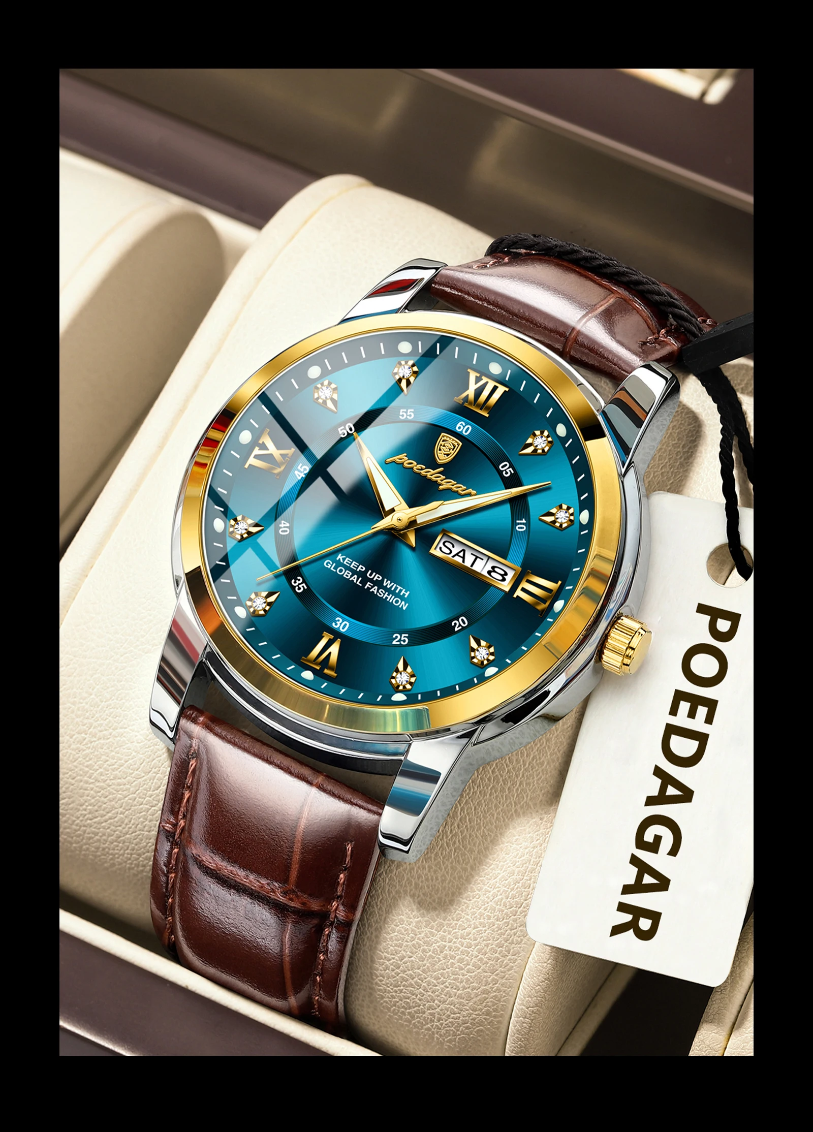 Be the first to review “POEDAGAR Original Business Male Watch Waterproof Luminous Leather Men’s Wristwatch Date Week Luxury”