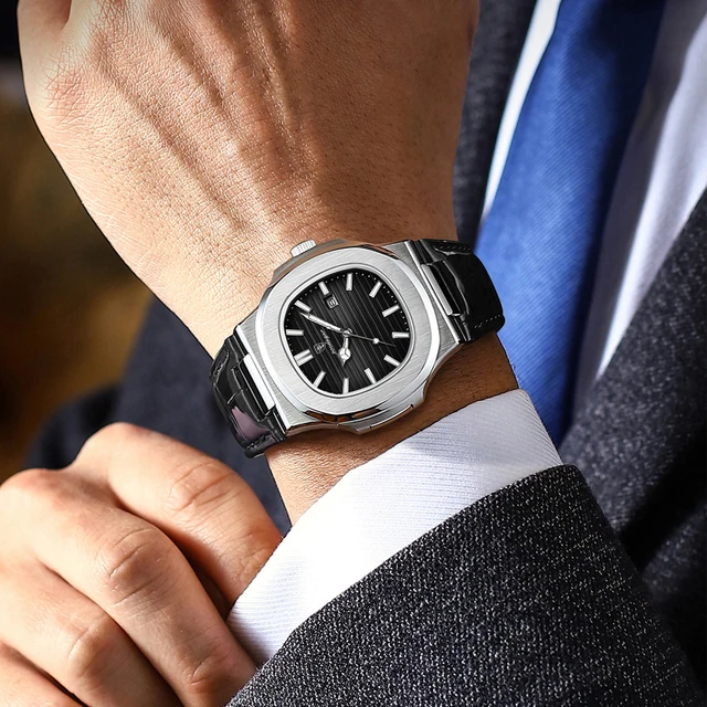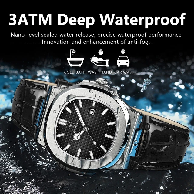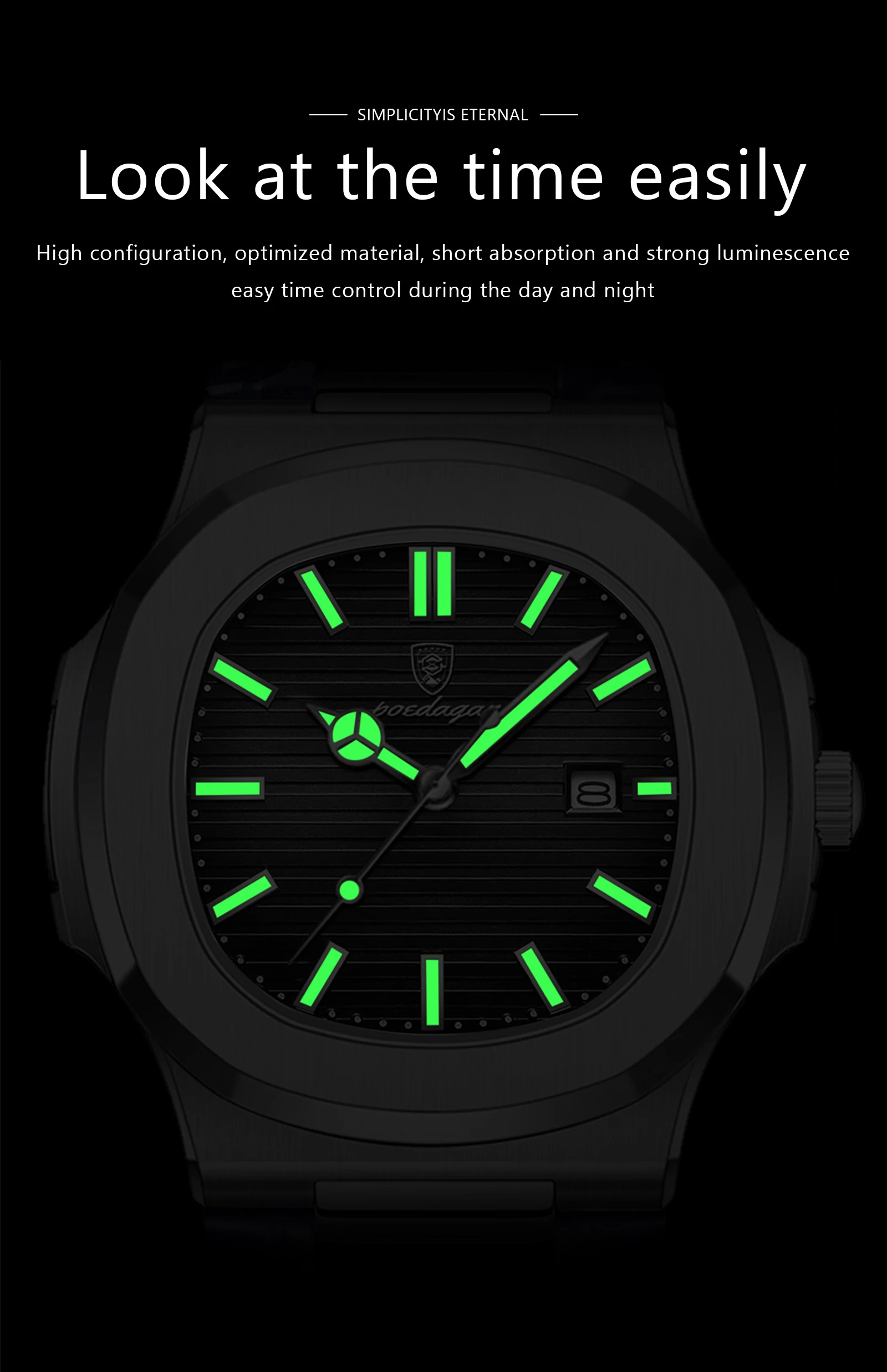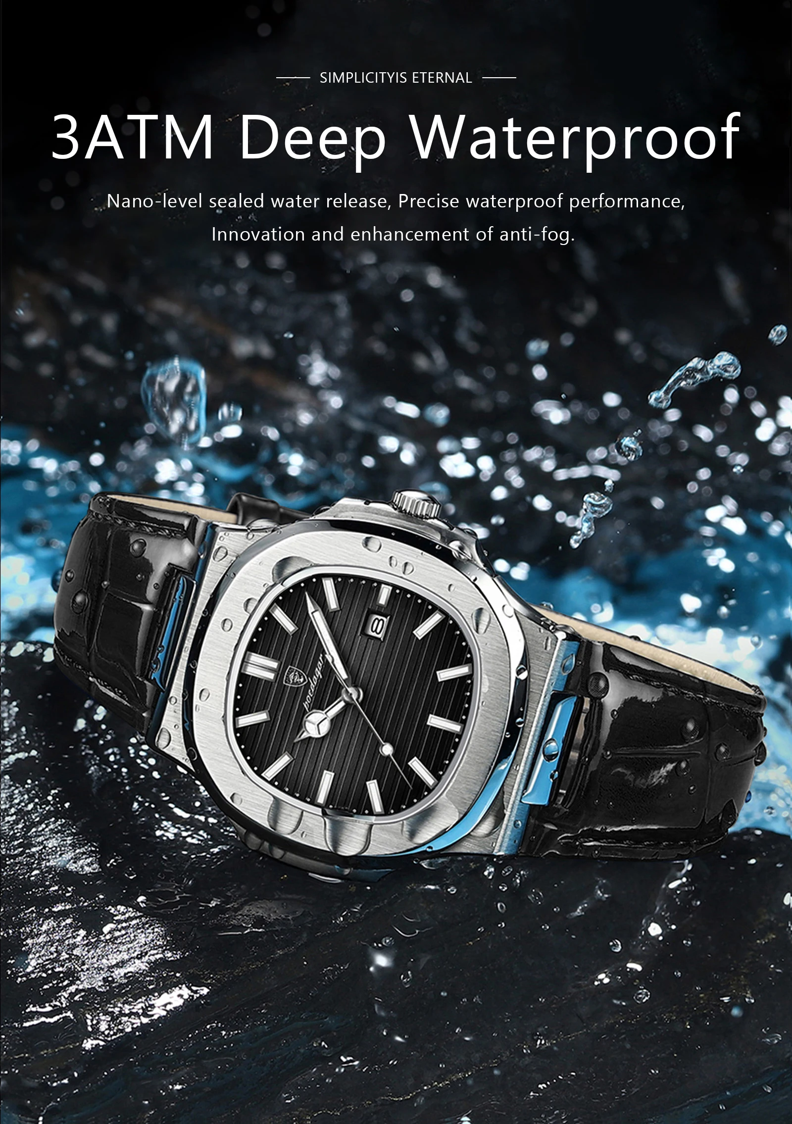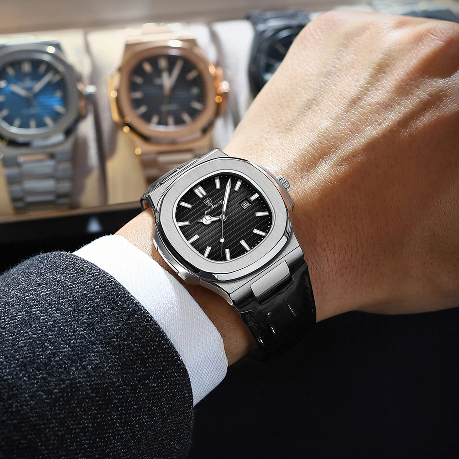 POEDAGAR Business Men's Quartz Wristwatch Date Waterproof Luminous Leather Watches For Men High Quality Square Stylish Man Watch