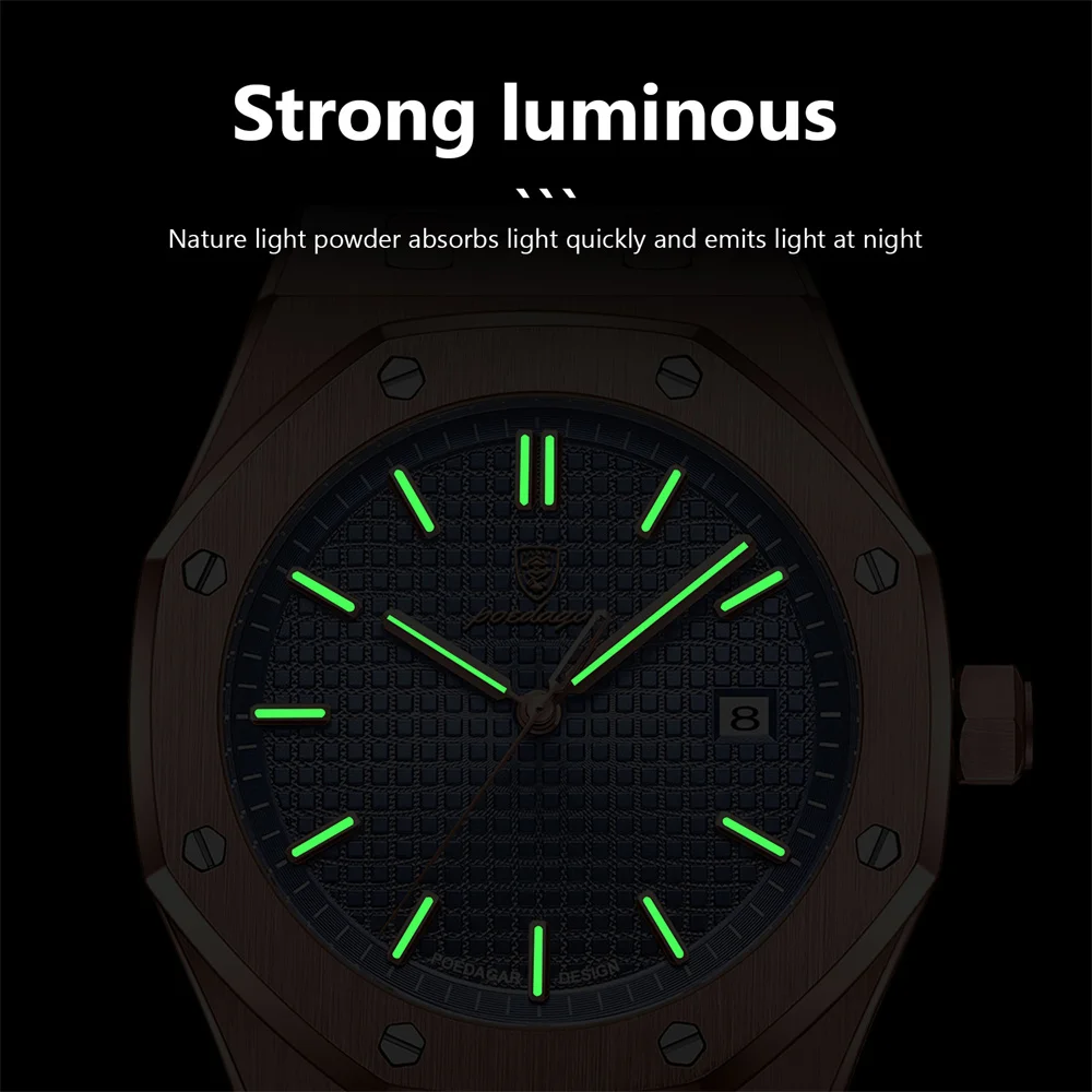 POEDAGAR Original Luxury Men's Watches Date Chronograph Stainless Steel Quartz Watch Waterproof Luminous Fashion Man Wristwatch