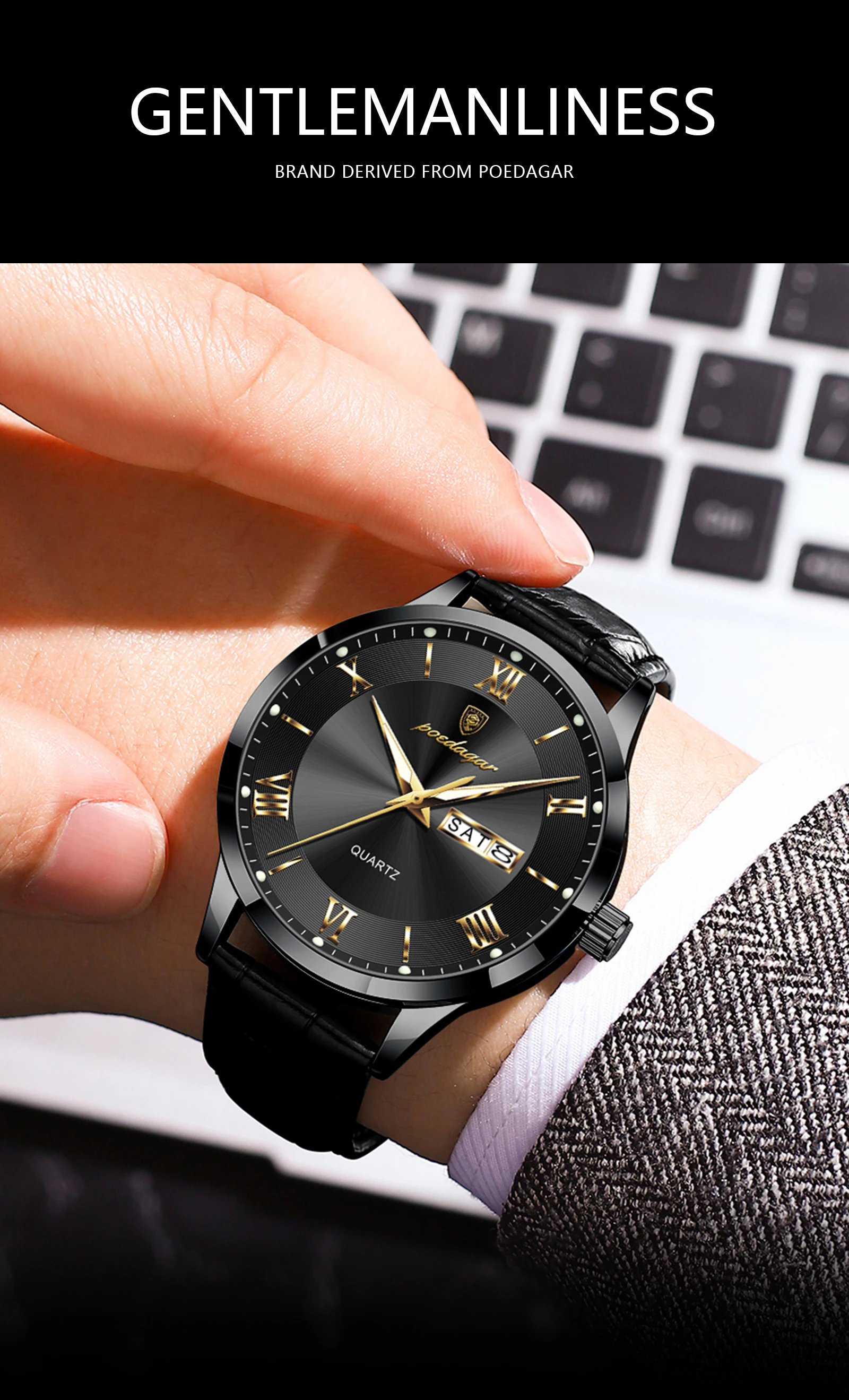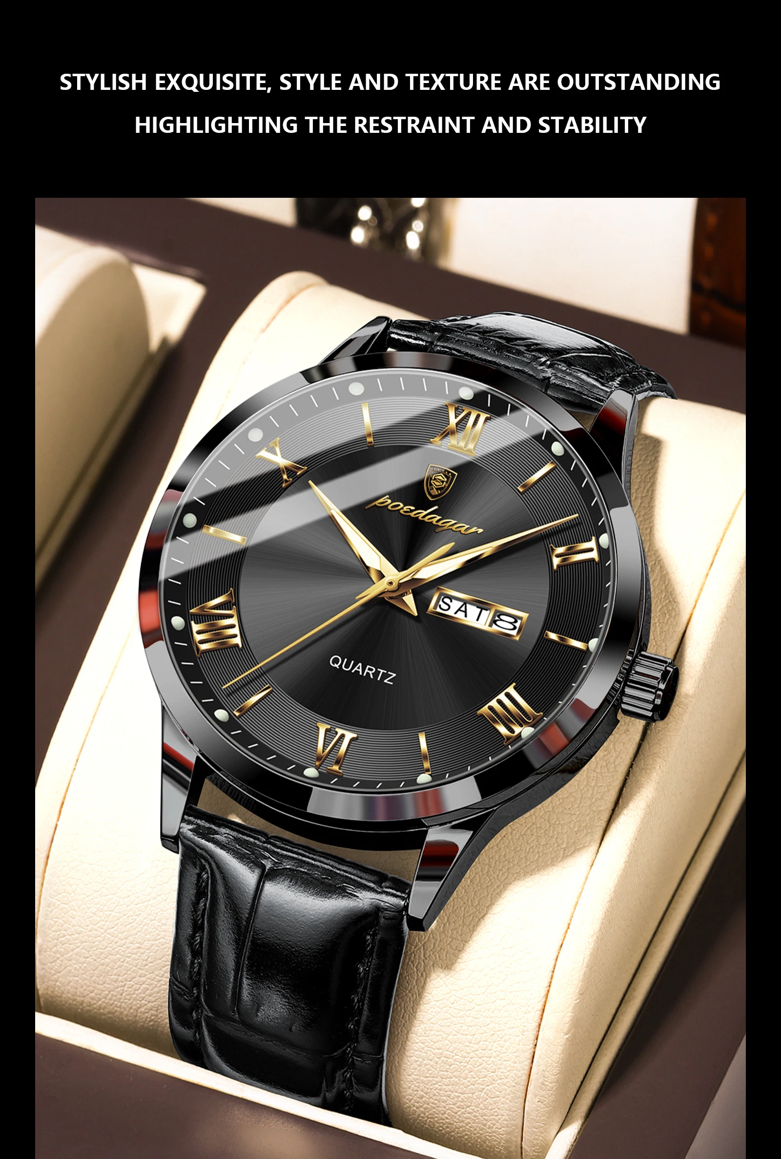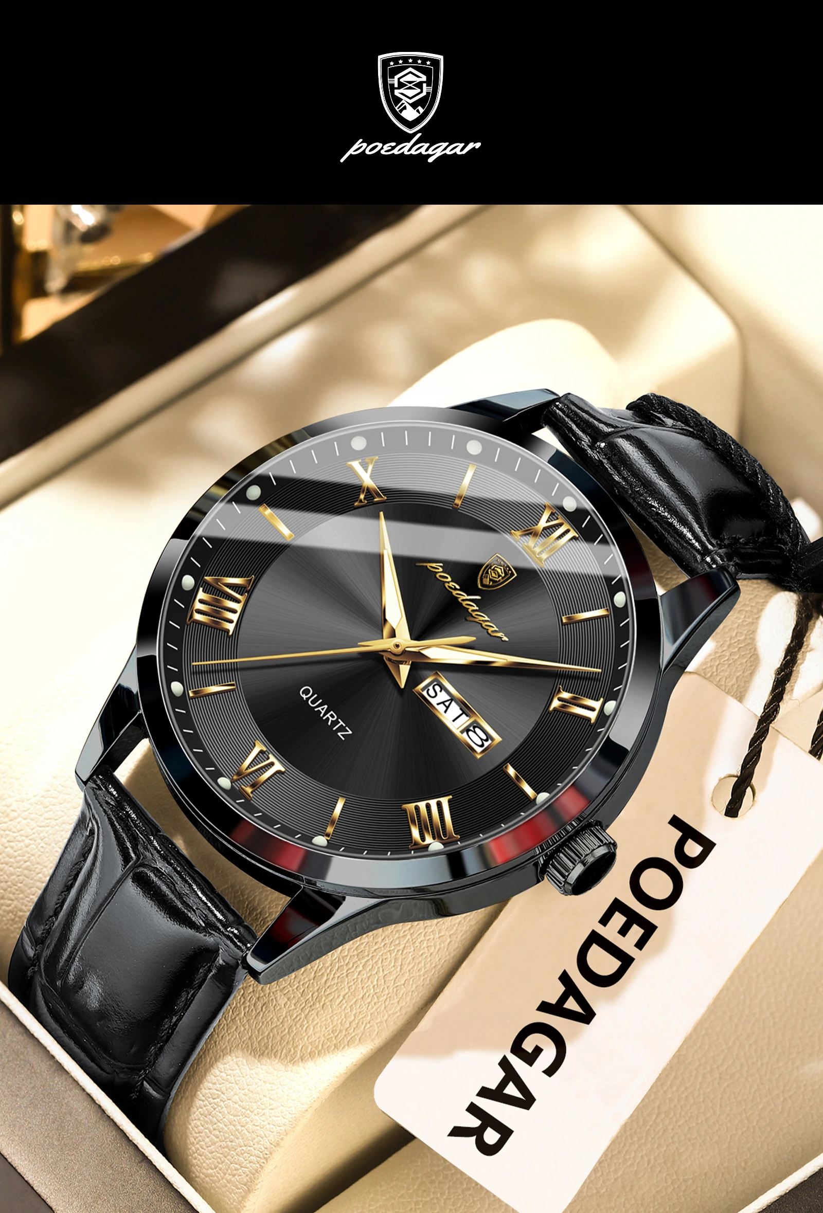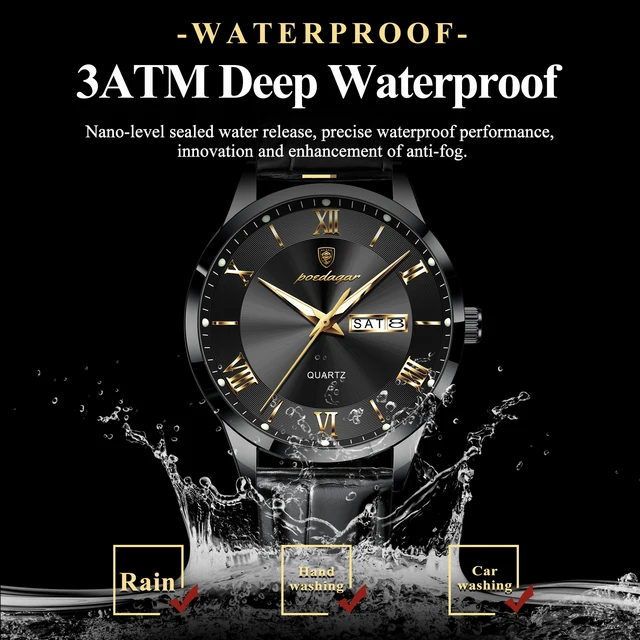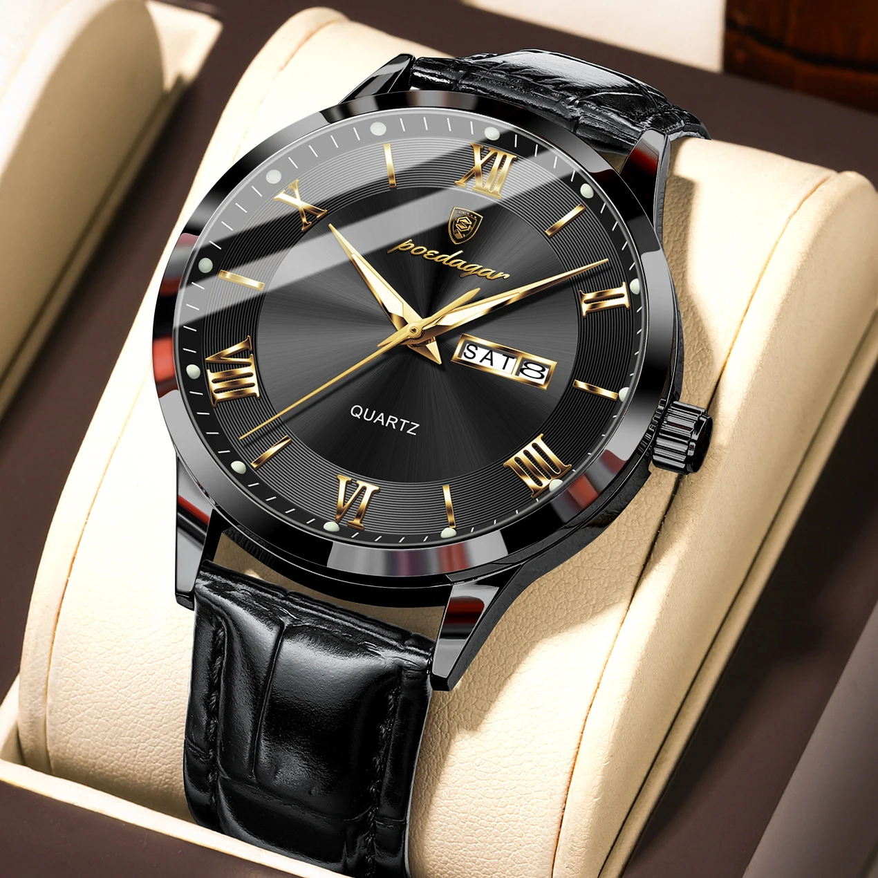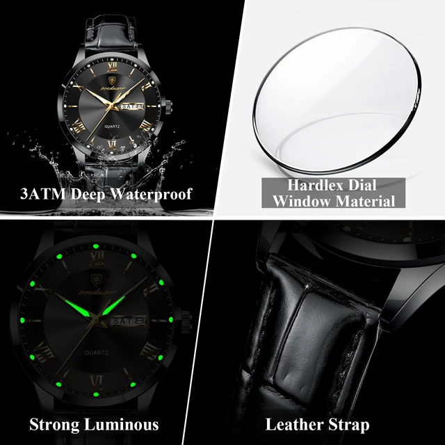 POEDAGAR Original Luxury Wristwatch For Men Waterproof Luminous Date Week Leather Man Watch Simple Business Quartz Men's Watches