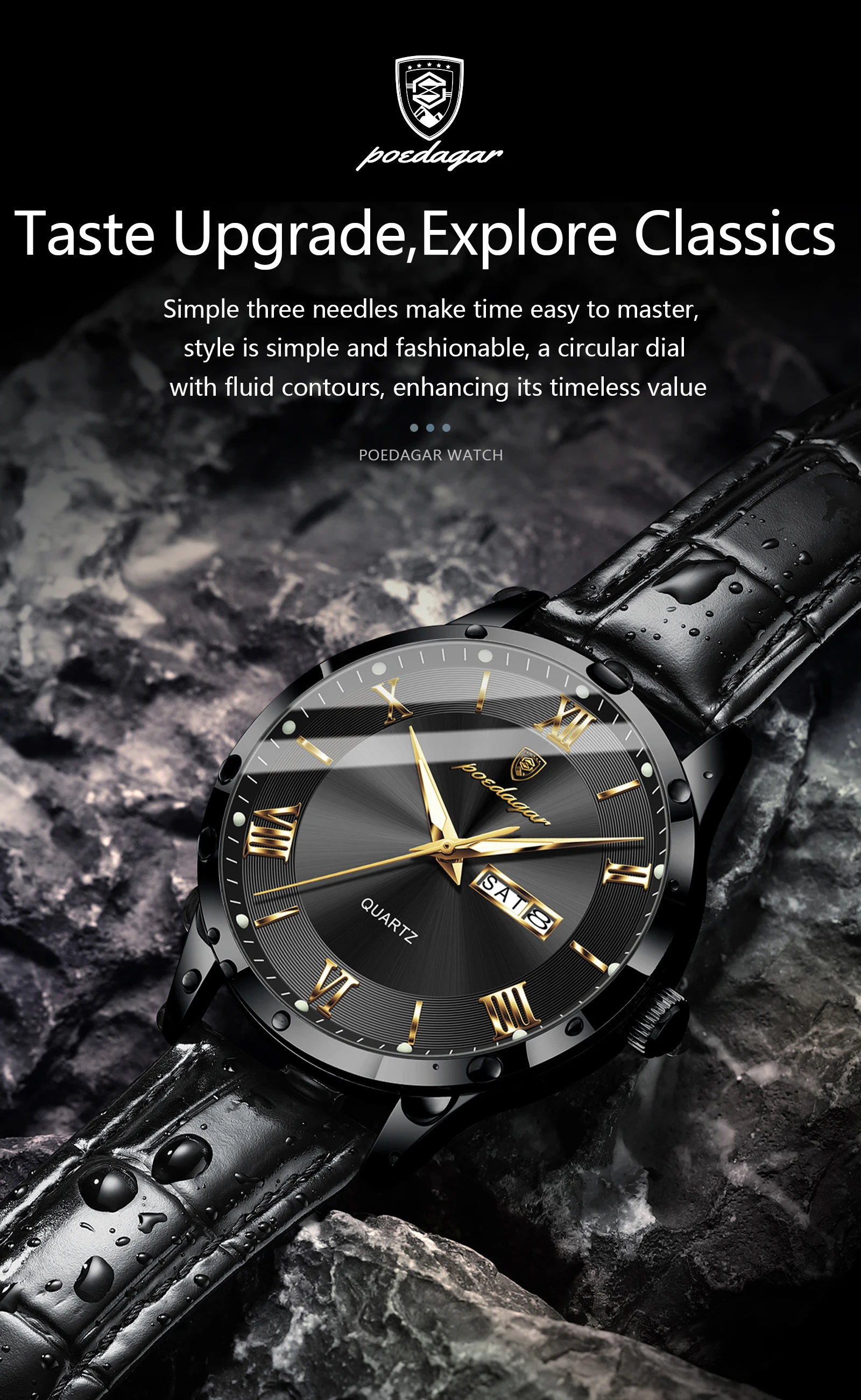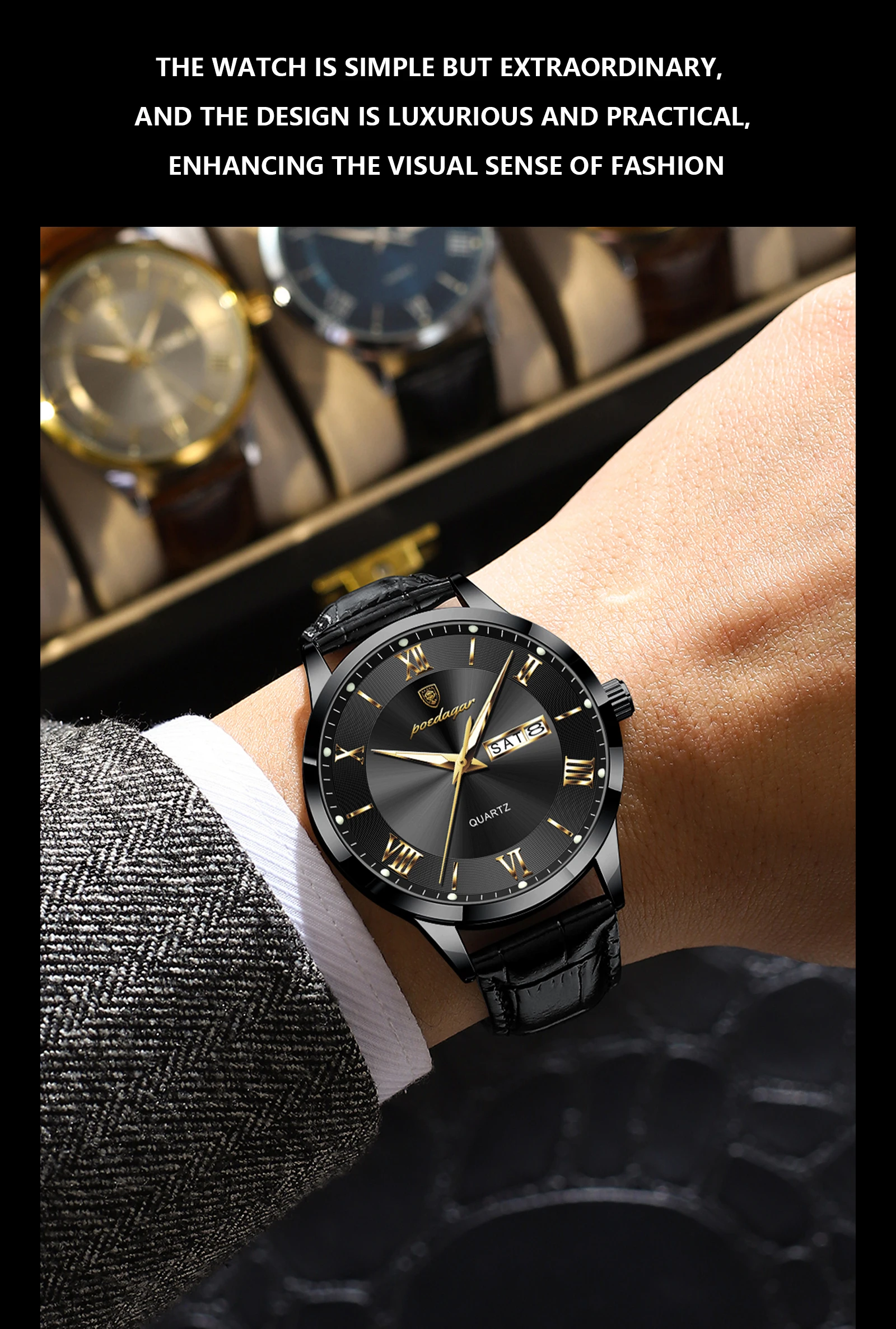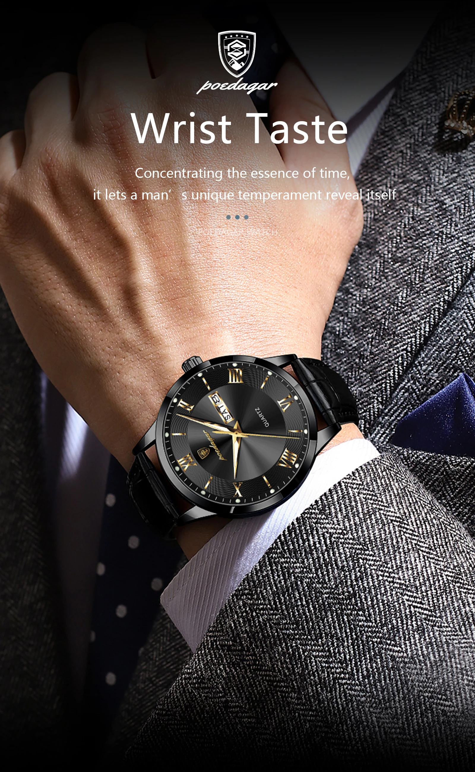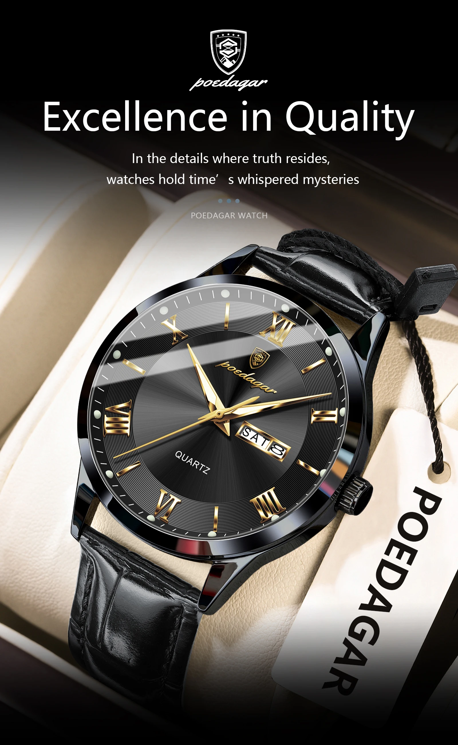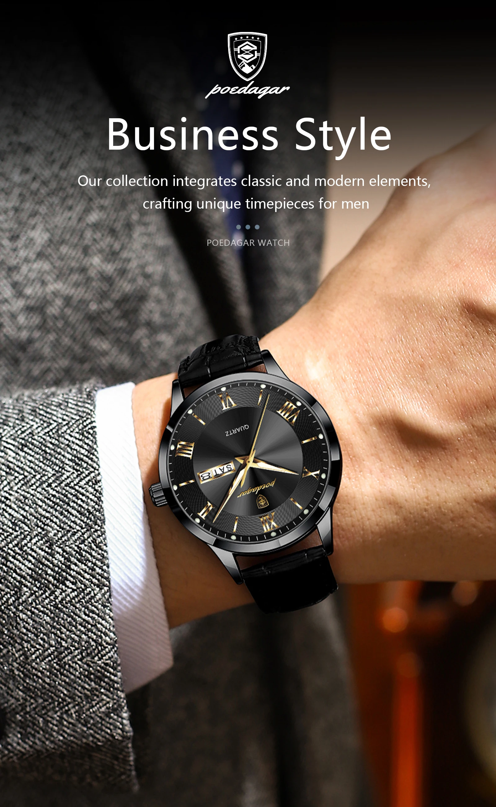 POEDAGAR Original Luxury Wristwatch For Men Waterproof Luminous Date Week Leather Man Watch Simple Business Quartz Men's Watches