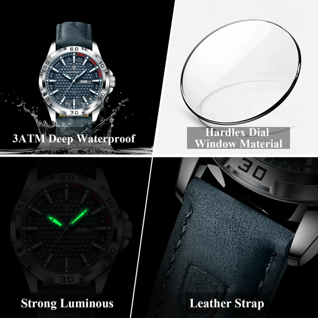 POEDAGAR Men Quartz Watch Luxury Sports Waterproof Chronograph Luminous Date Man Wristwatch Business Leather Men's Watches Clock