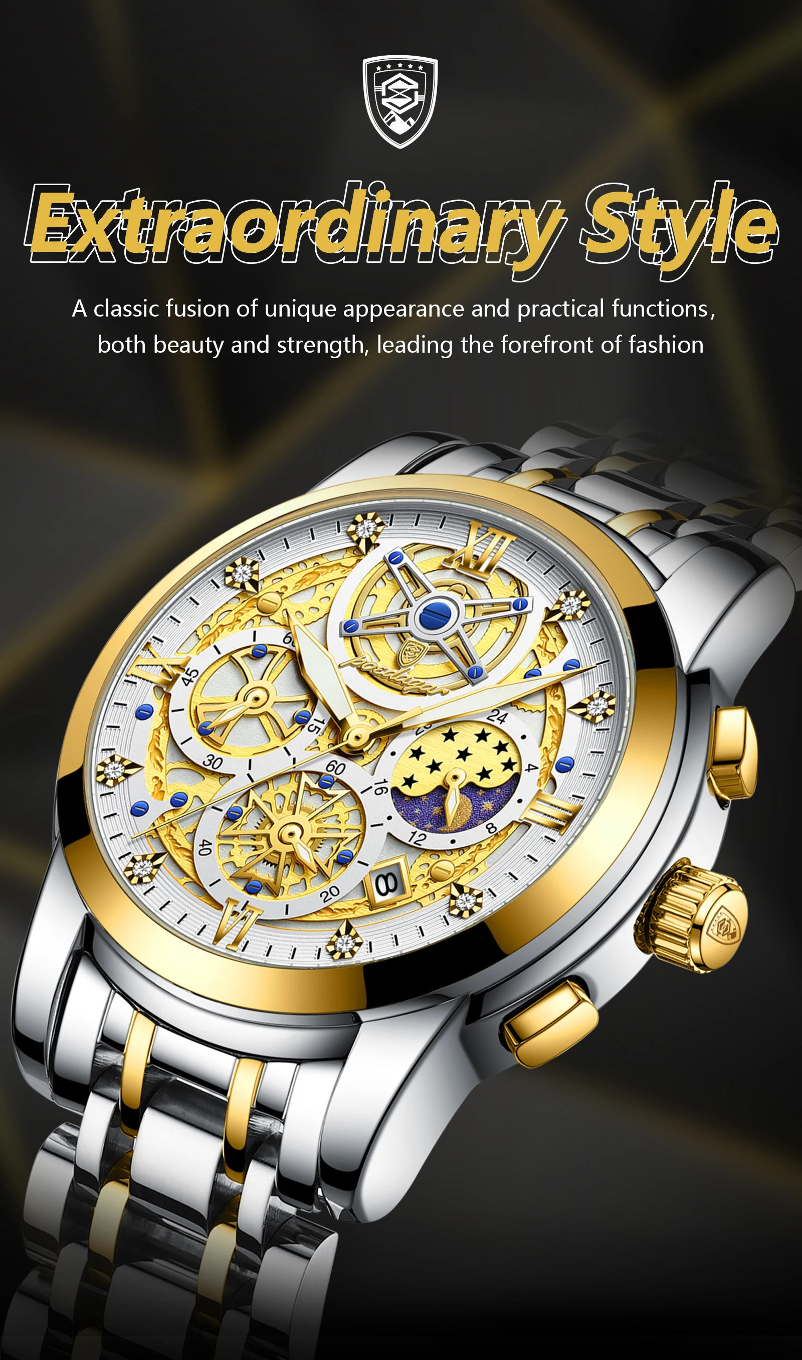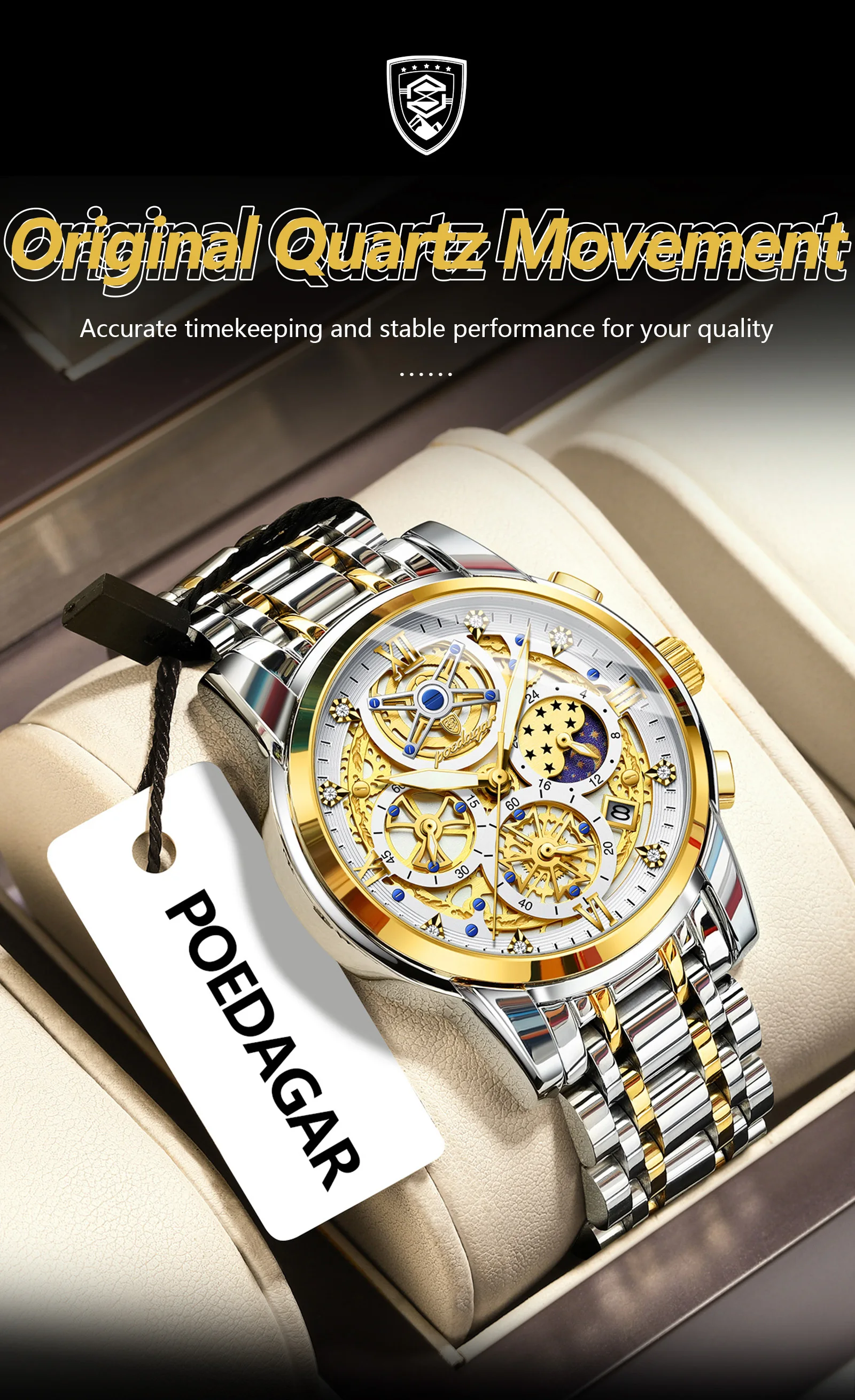 POEDAGAR Top Fashion Men’s Watches Stainless Steel Date Chronograph Business Quartz Men Wristwatch