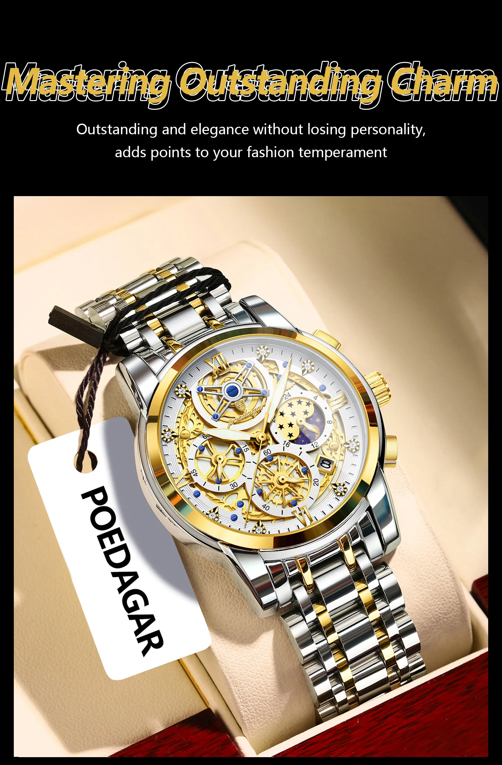 POEDAGAR Top Fashion Men's Watches Stainless Steel Date Chronograph Business Quartz Men Wristwatch Waterproof Luminous Man Watch