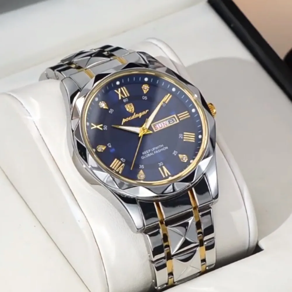 POEDAGAR New Business Mens Watches Top Brand Luxury Stainless Steel Waterproof Week Date Quartz Watch for Men Relogio Masculino