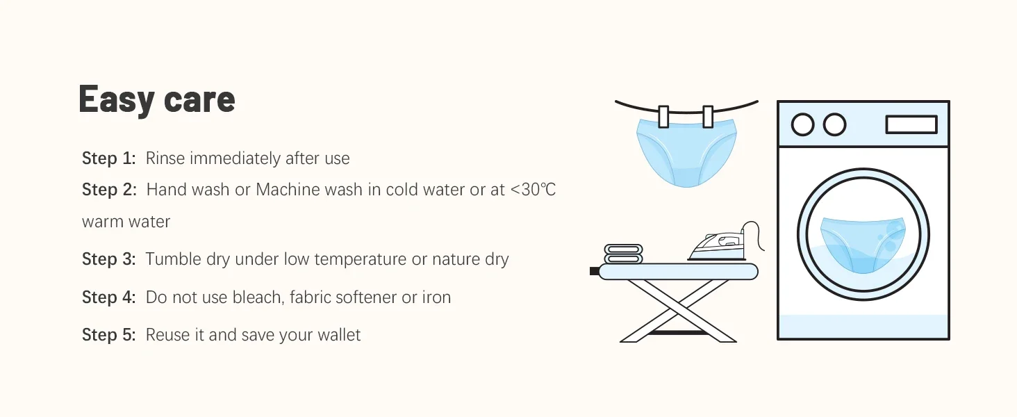 Save money on pads and tampons with our sustainable, reusable period panties. They are not only comfortable but are more efficient than sanitary wear and easy to clean, just simply rinse and machine wash.
