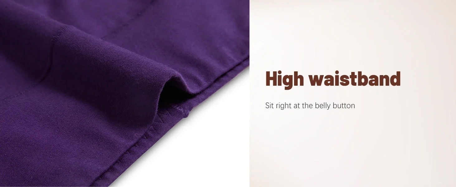High rise design with a wide stretchy waistband offers moderate tummy support.
