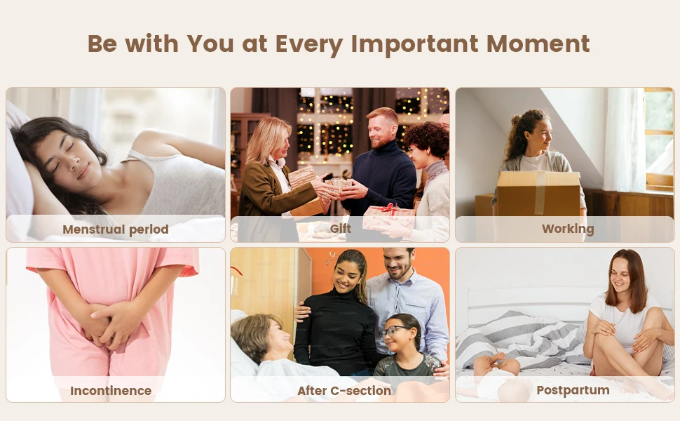 Menstrual peiod & Incontinence & Postpartum & Bedtime & Home leisure & After surgery related to the stomach.