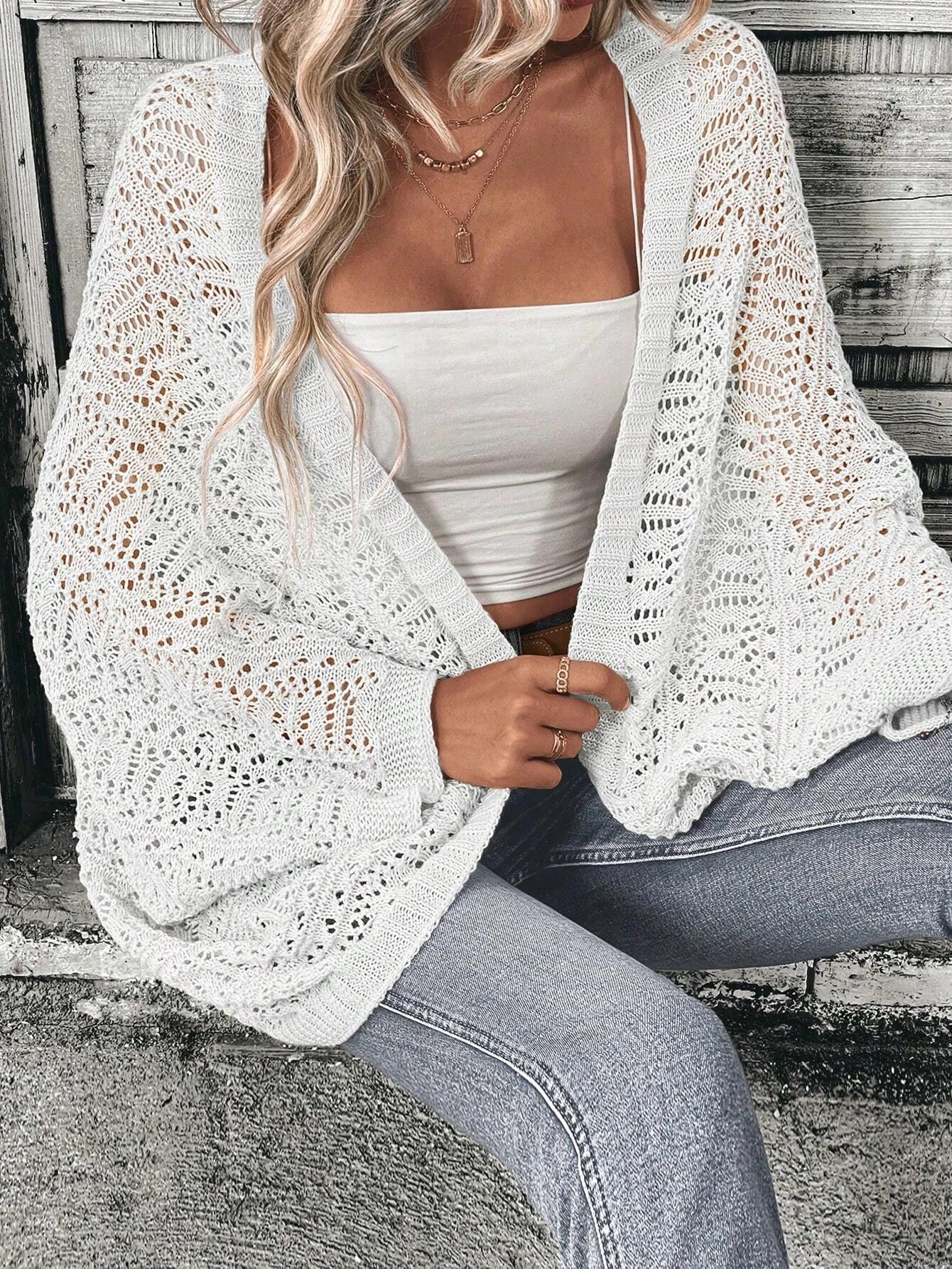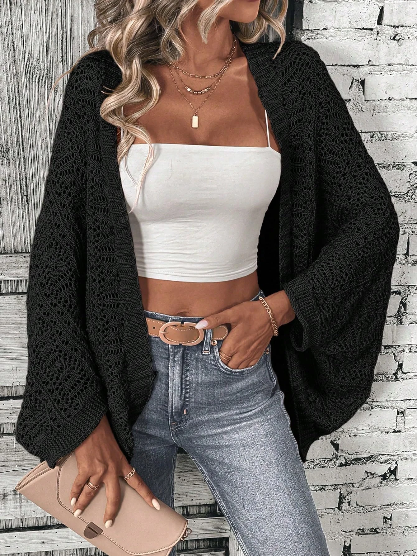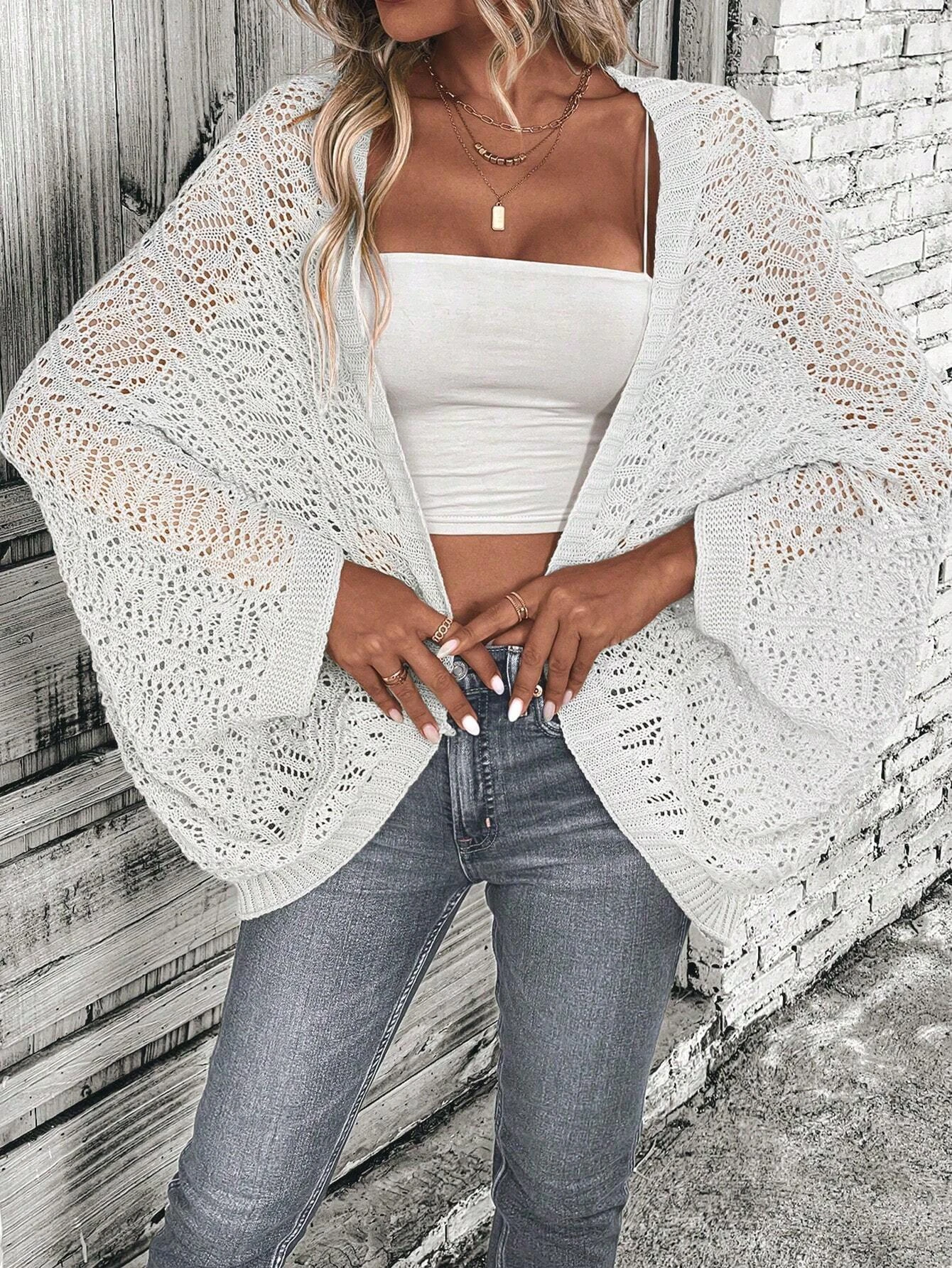 Price range: 27.11$ through 31.36$Polyester 100.00% solid color camisole knit cardigan elegant front open bat wing sleeve loose cardigan
