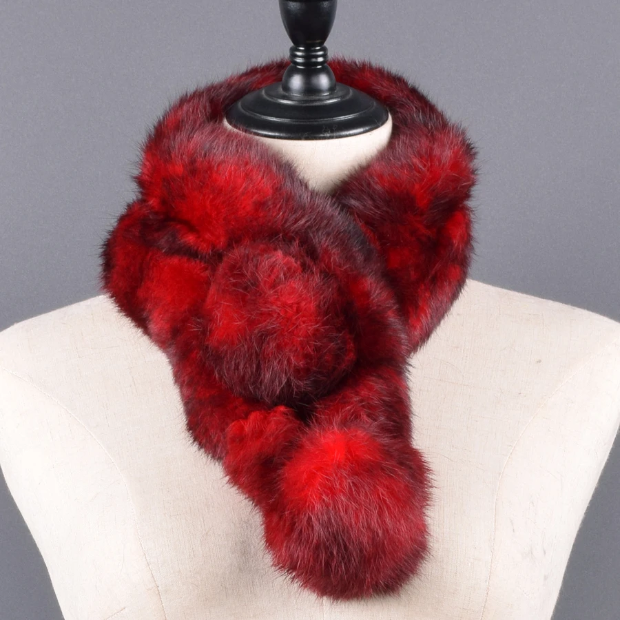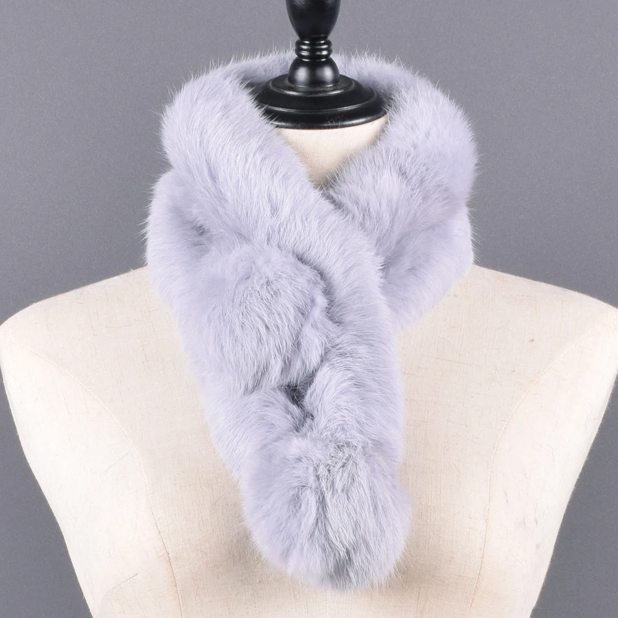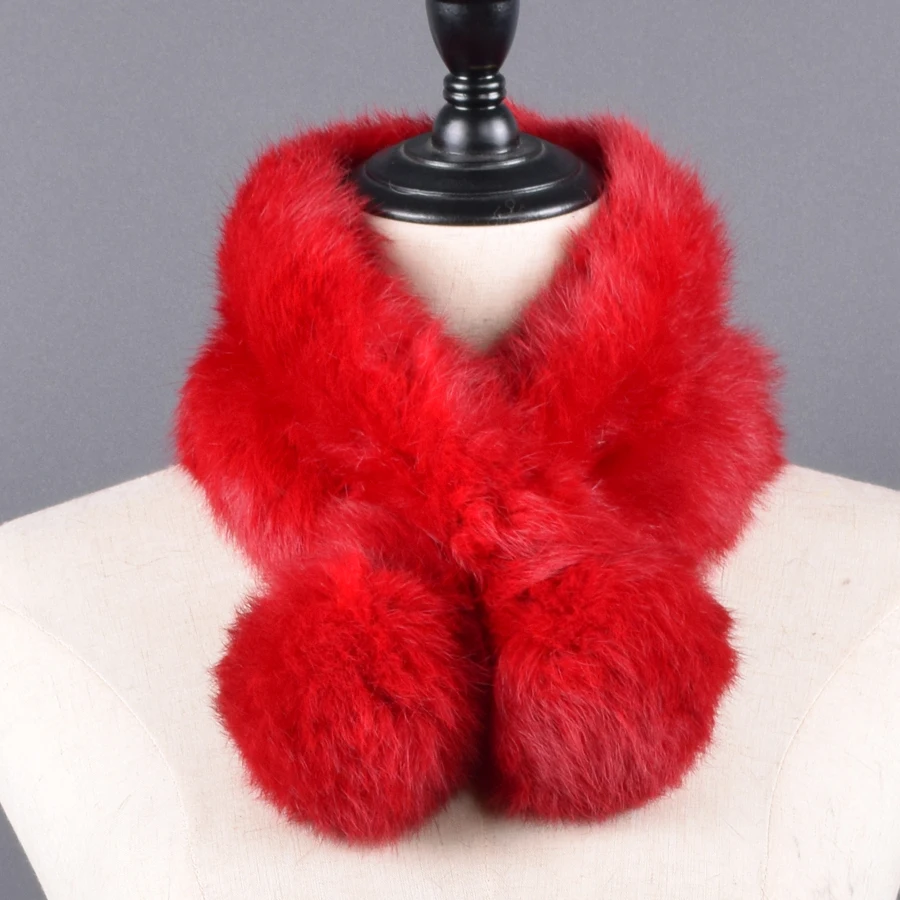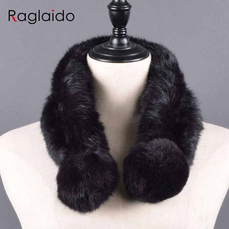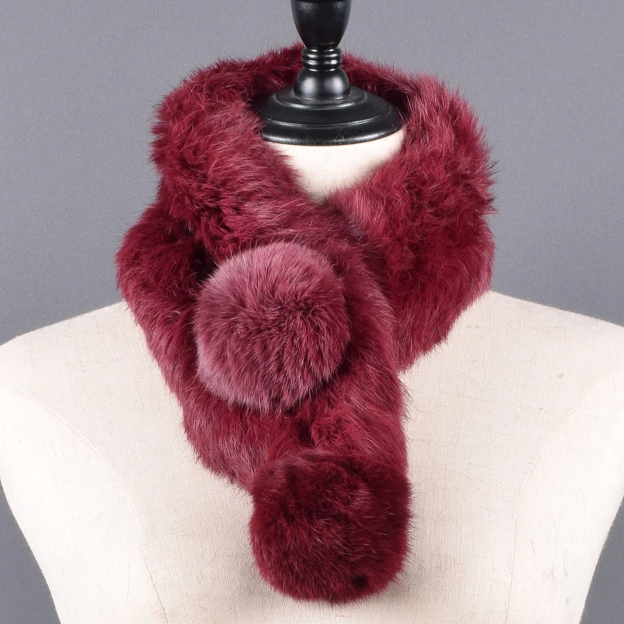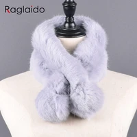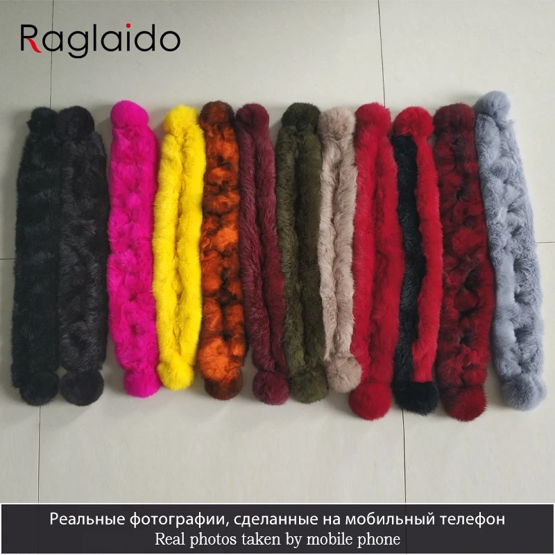 Pompoms Fur Scarves Winter Real Rex Rabbit Women Warm Natural Rex Muffler Lady Fluffy Real Fur Wholesale