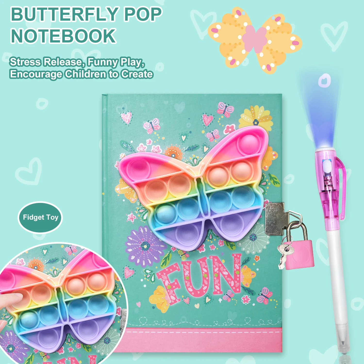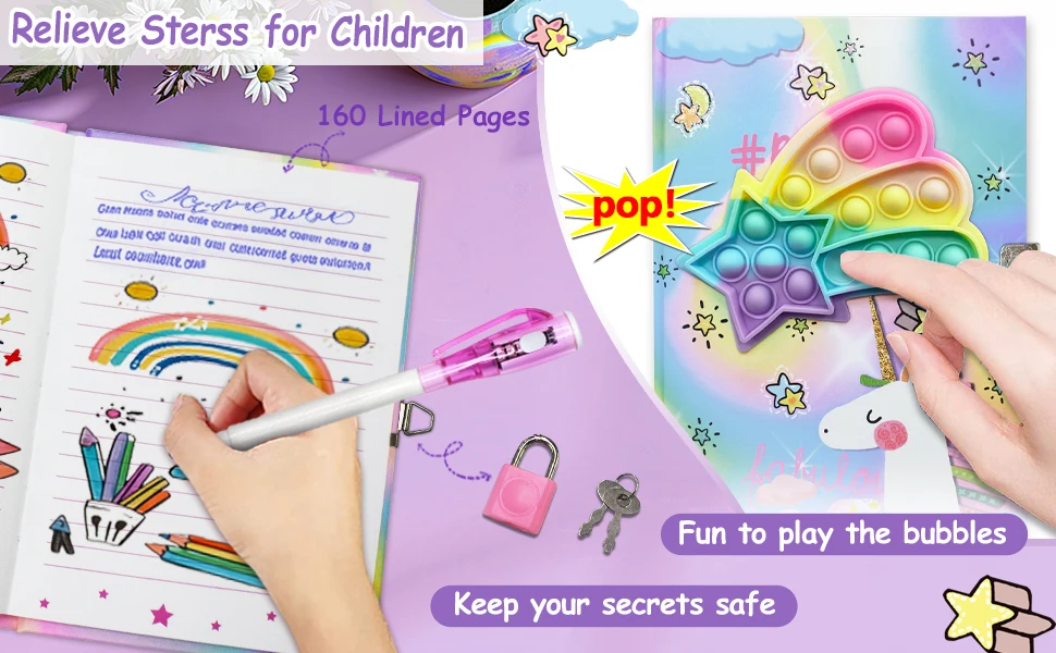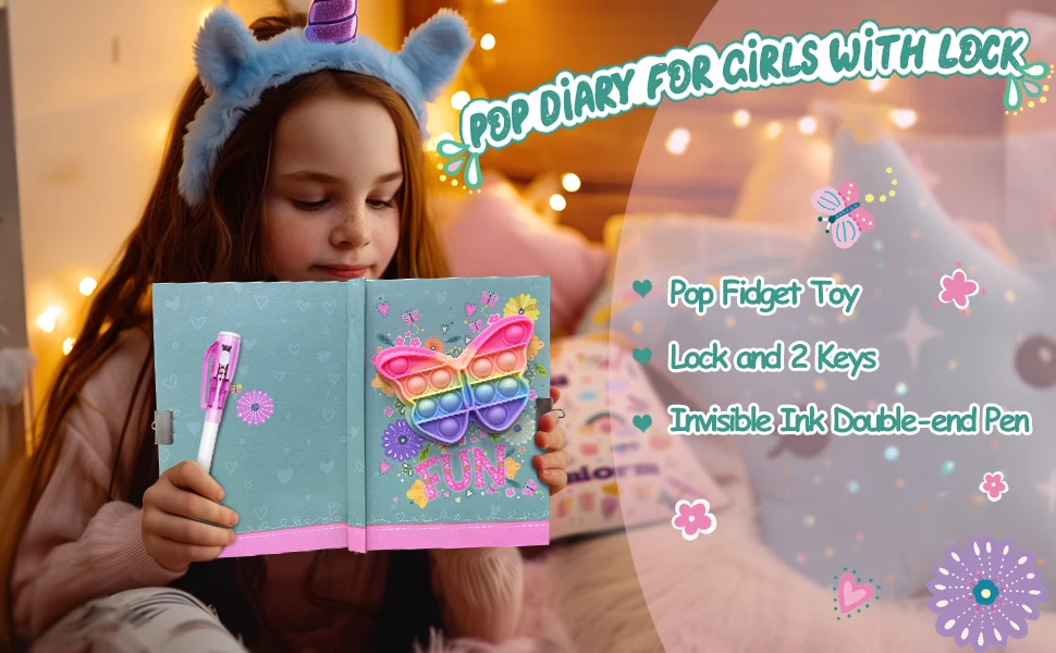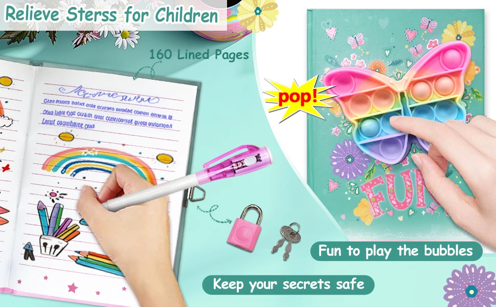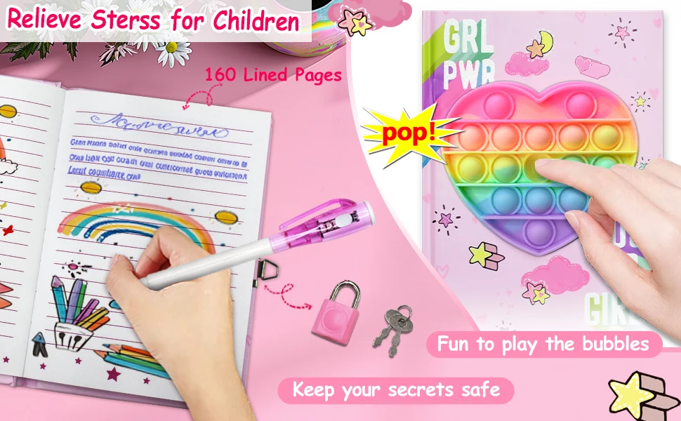 Pop Girls Diary with Lock and Invisible Ink Double-end Pen