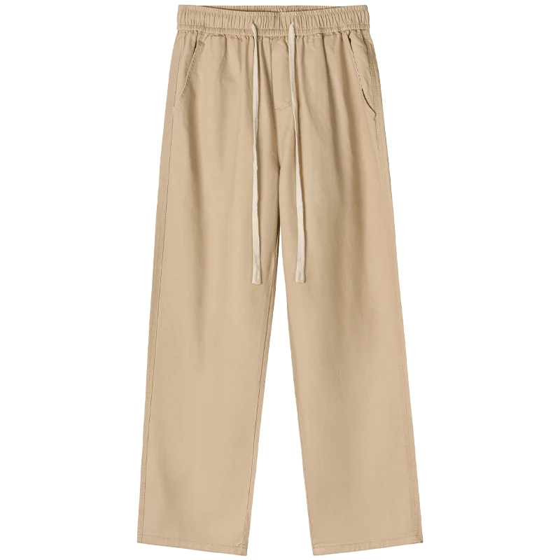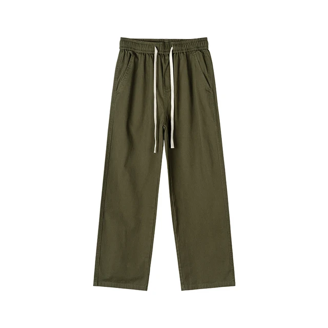 Men's Casual Cotton Cargo Pants Elastic Waist Plus Size Loose Fit Multi-Pocket Construction Work Pants