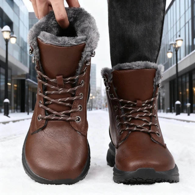 Popular Men’s Winter Snow Boots Handmade Leather Waterproof Warm Sneakers New Outdoor Non Slip
