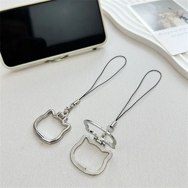Cat mobile phone stand lanyard key chain multi-function portable lazy stand universal metal ring hanging.