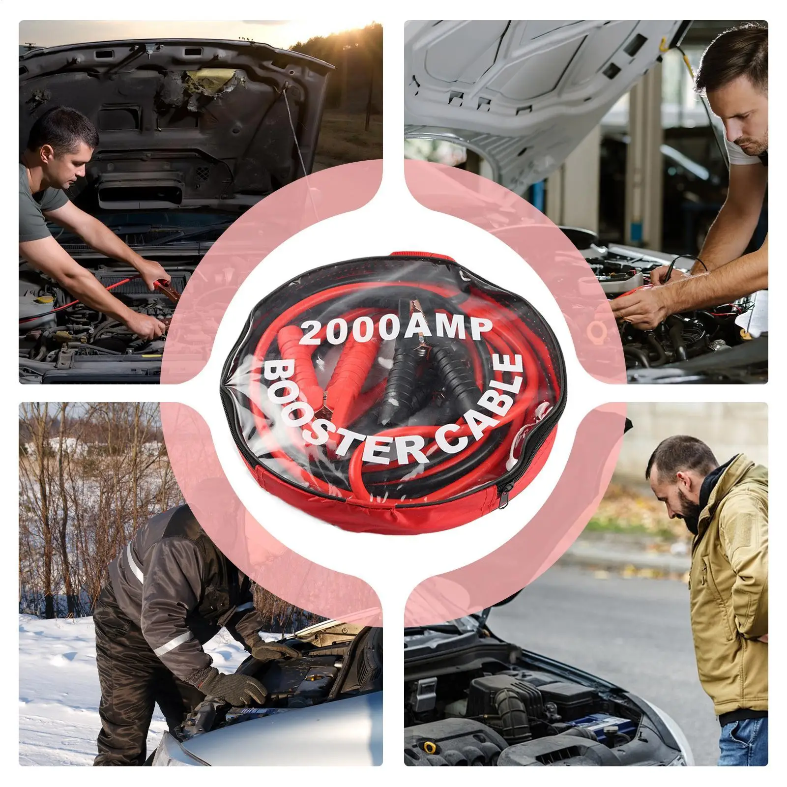 1.Rapid Vehicle Revive: These jumper cables for car are designed to provide a quick jump start with a robust 2000A top current, effectively powering urgency car battery boosters for 3.5L engines, enabling drivers to restart their vehicles promptly during critical moments such as road trips or early morning commutes