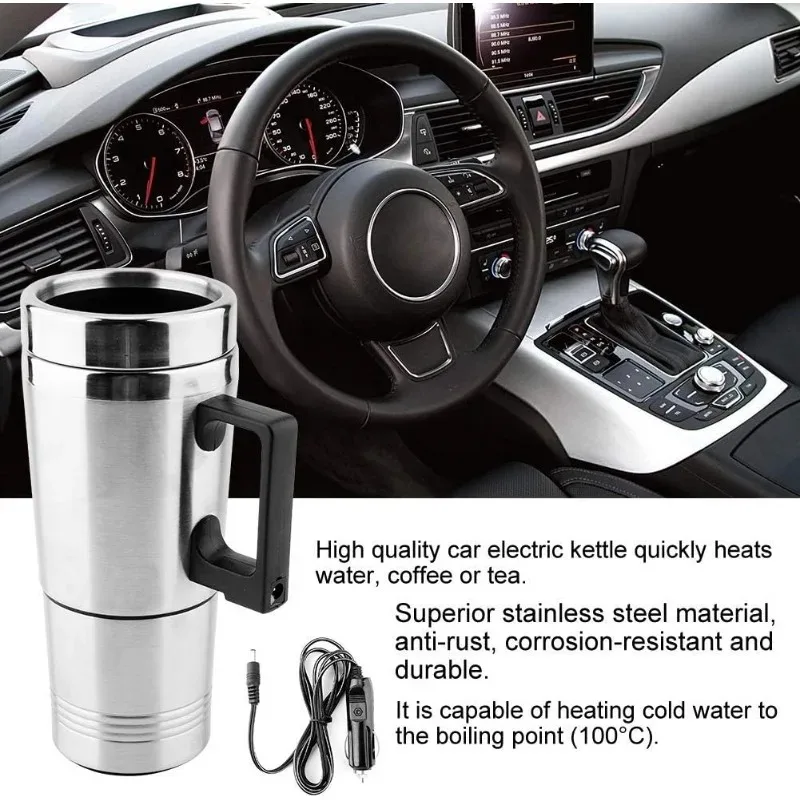 2. with Car Power Adapter: Designed for use in vehicles, this electric heating car kettle can be comfortably enjoyed while driving. It includes a car power adapter cable, allowing users to easily connect it to the 12V/24V DC car cigarette lighter socket. Enjoy hot water or beverages on-the-go.