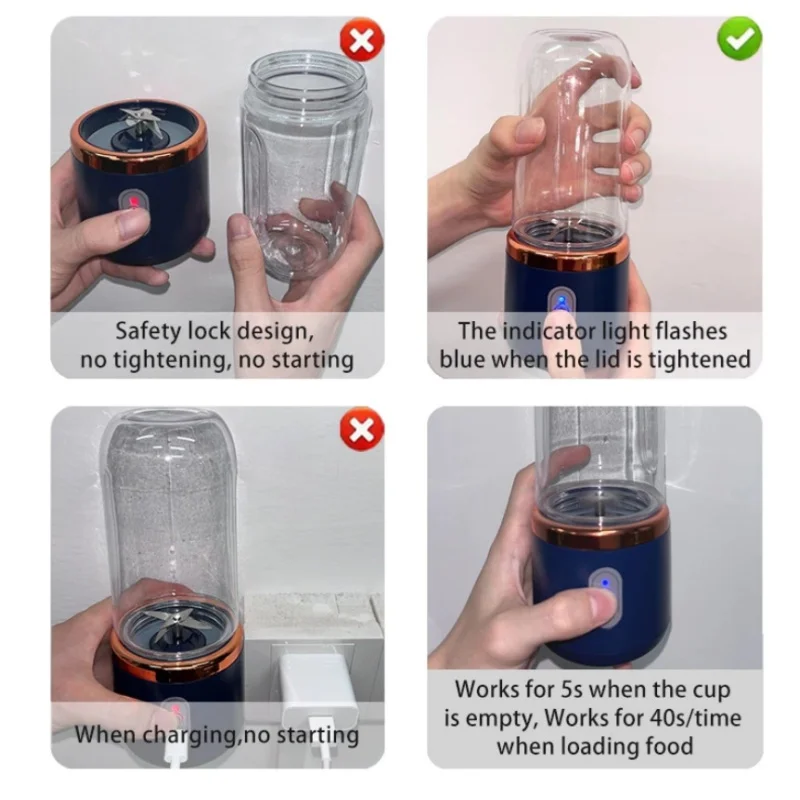 3.The cup is not screwed to appear (blue light) flashing can not be used