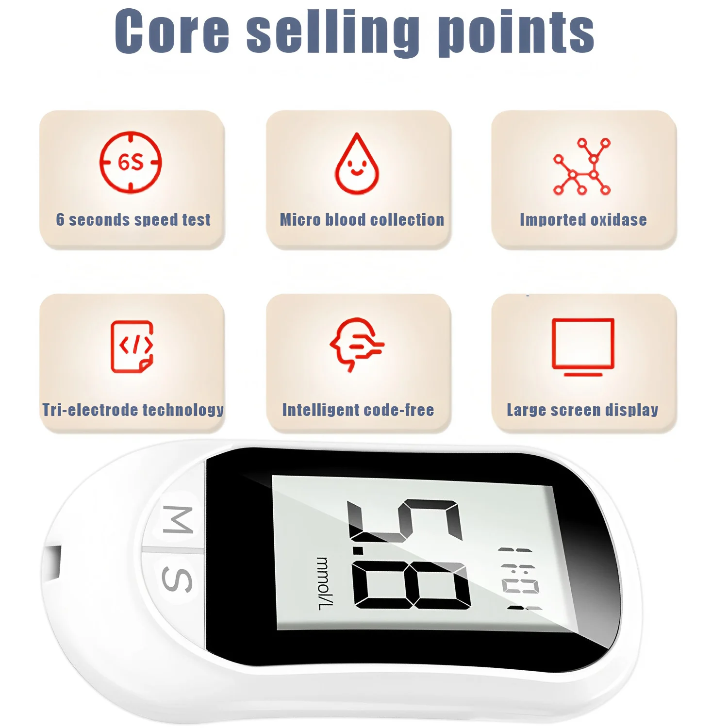 Portable Blood Glucose Meter Kits Blood Sugar monitor Diabetes Detection with Test strips and Blood Lancets