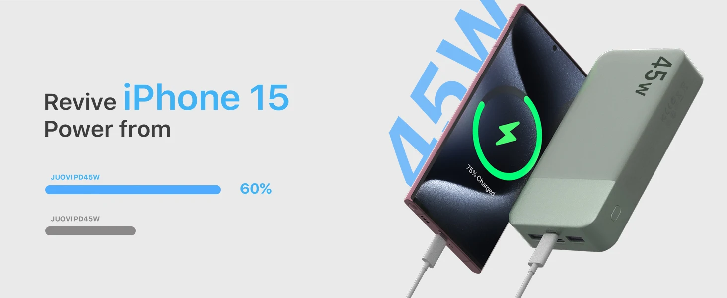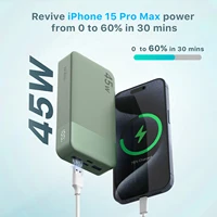 【45W PD High-Speed Charging】NOBIS 45W High-Speed power bank has 45W fast charge and 30W rapid recharge technology.It only takes 30 minutes to charge your iPhone 15 pro from 0% to 60%, which is 3-4 times faster than most ordinary 10W old power banks on the market.