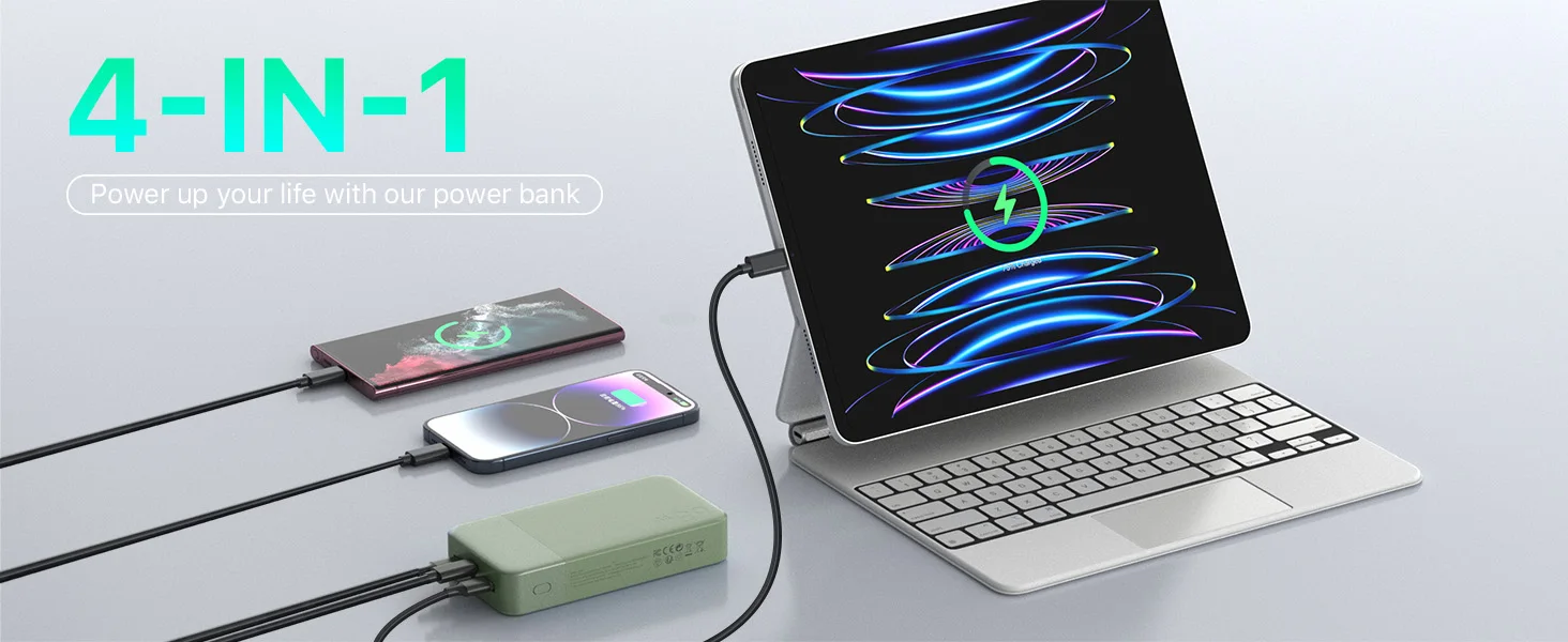 【Charge 4 Devices At Once】NOBIS usb c portable charger has 2 USB A ports and 2 Type C ports, which can power 4 devices at the same time, multiple people can share the power supply without queuing.Perfectly suited the needs of travelers,business professionals, students, and anyone who needs to keep their devices charged on the go.
