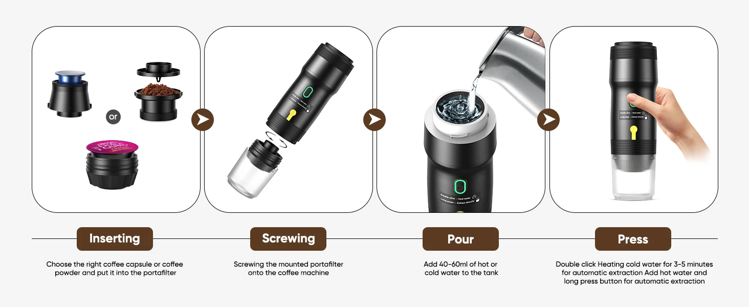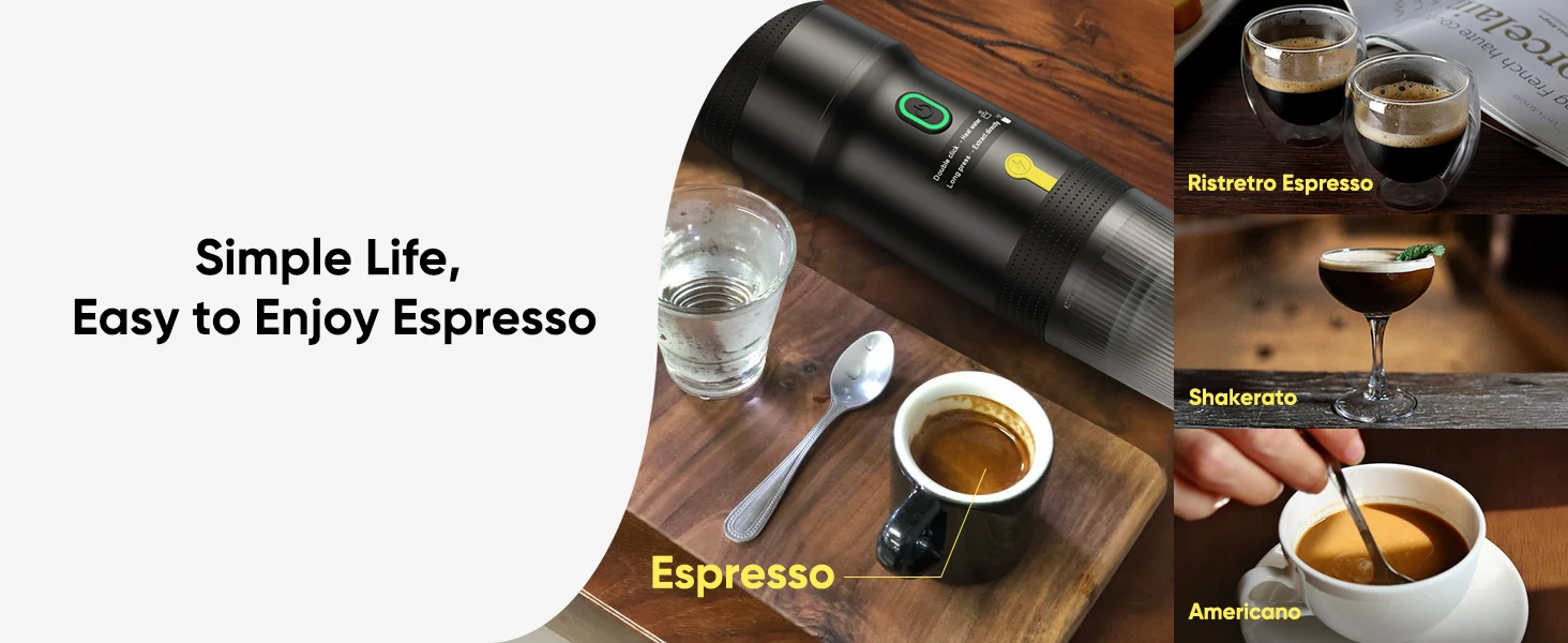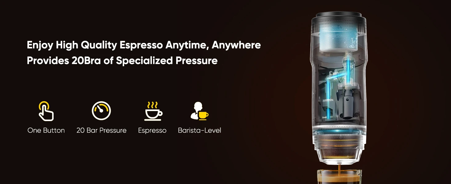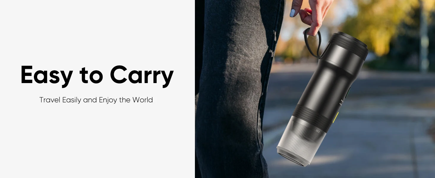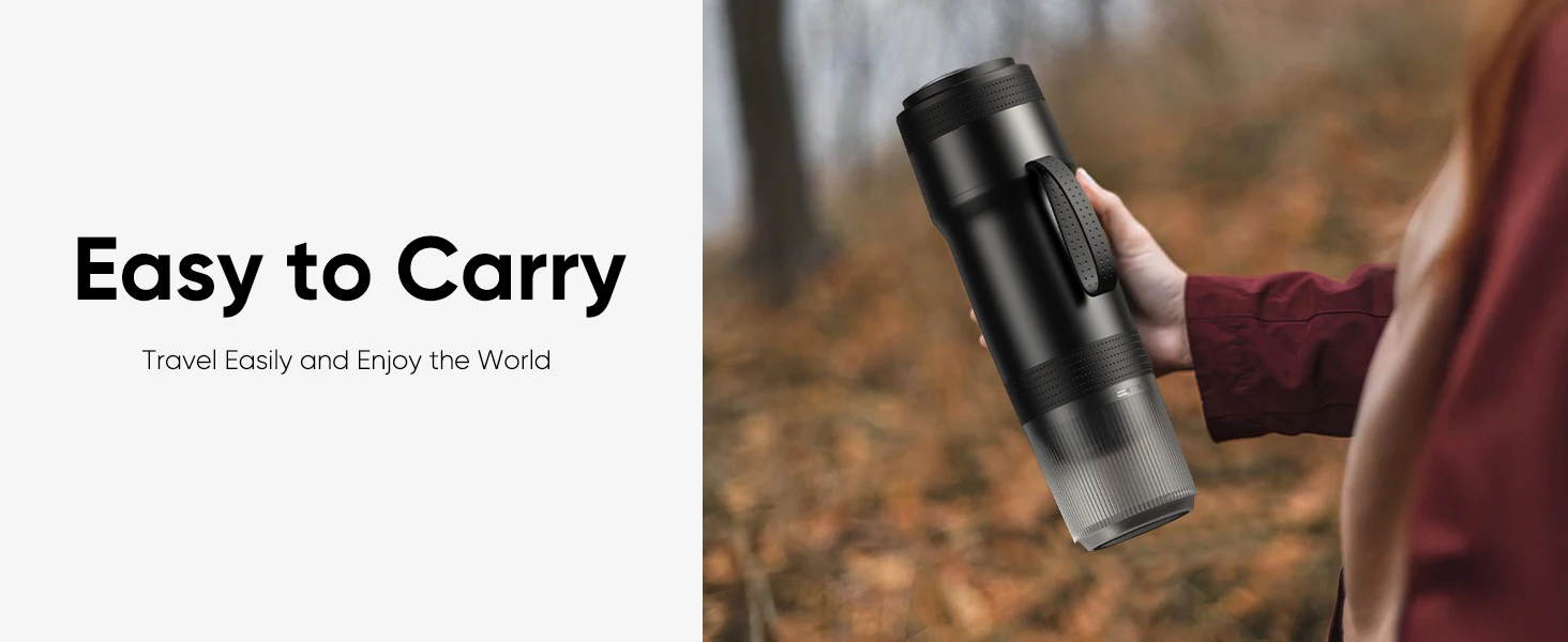 [EFFORTLESS ONE-TOUCH OPERATION] Our portable espresso maker features simple one-touch operation, ensuring an easy brewing experience. Whether you’re in the car, on a camping trip, or at home, this mini coffee maker lets you brew a perfect espresso with just a press of a button.