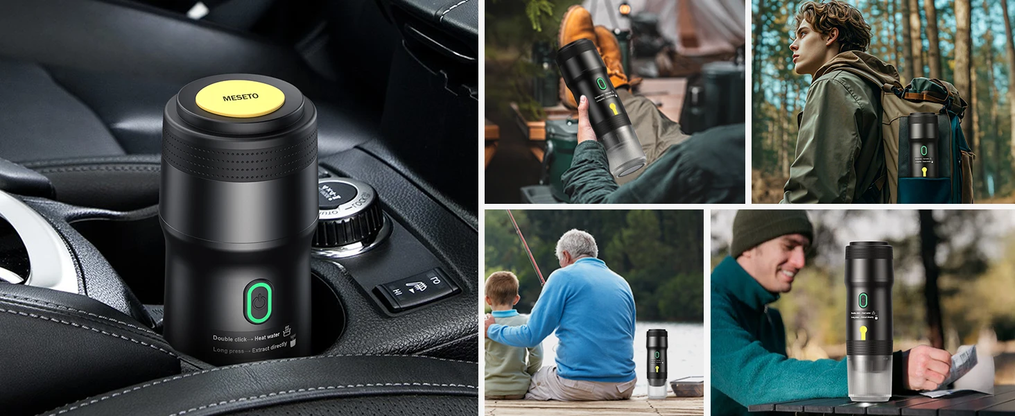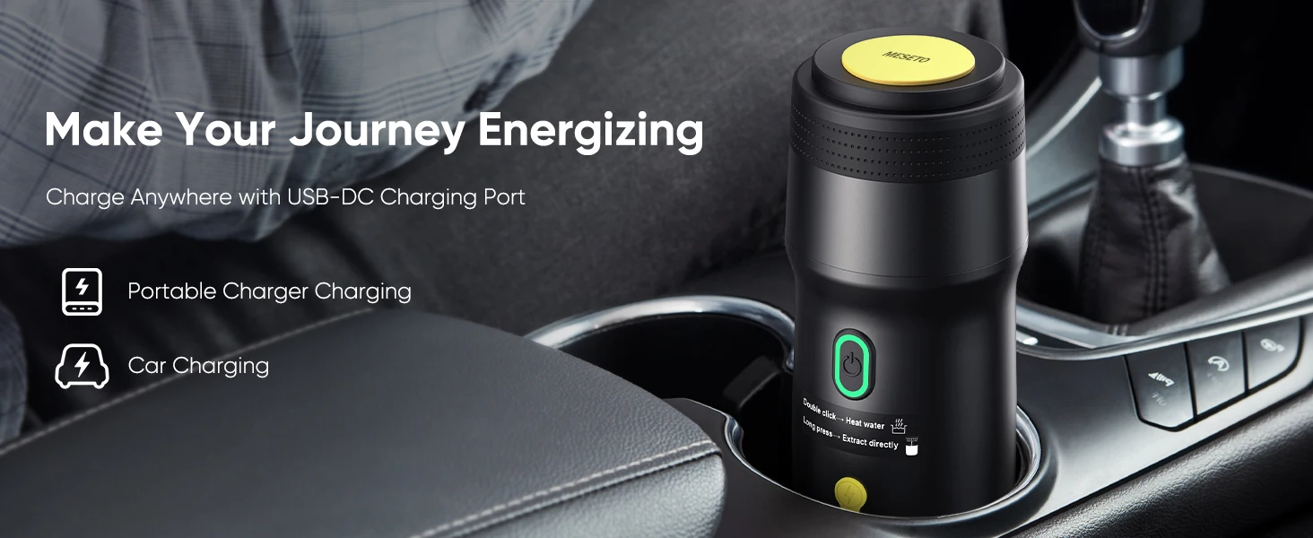 [USB-DC CAR CHARGING] Equipped with a unique USB-DC car charging feature, this espresso machine allows you to brew while charging. The portable design means you can enjoy your espresso even while driving or camping, making it Many people love the portable espresso maker for travel and outdoor adventures.