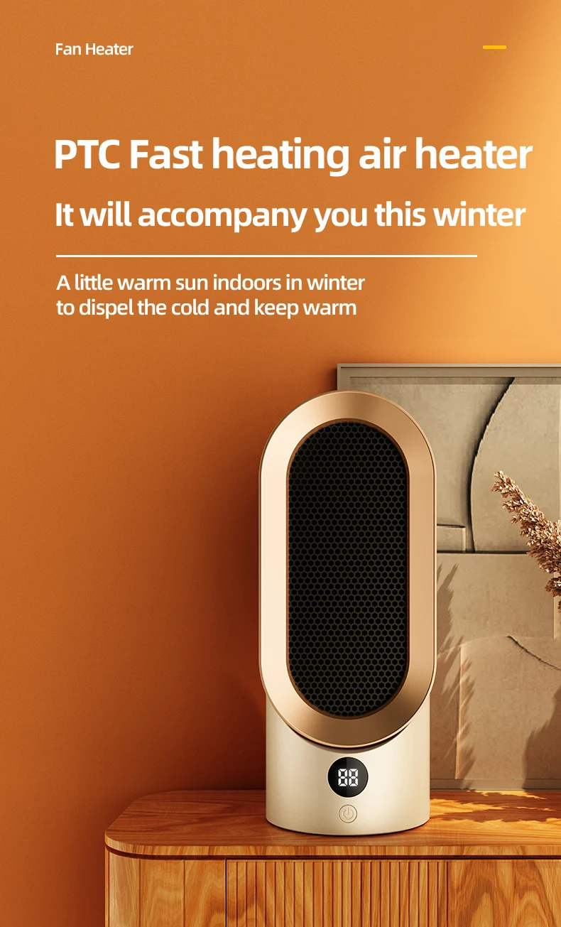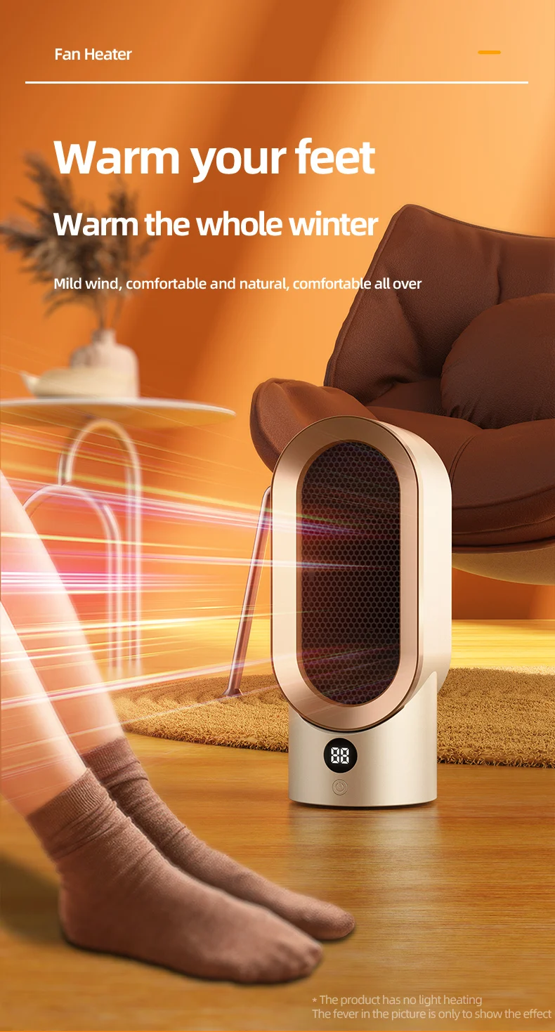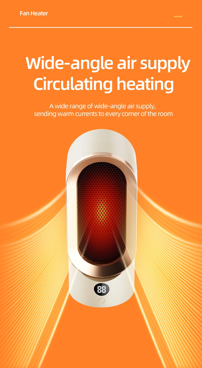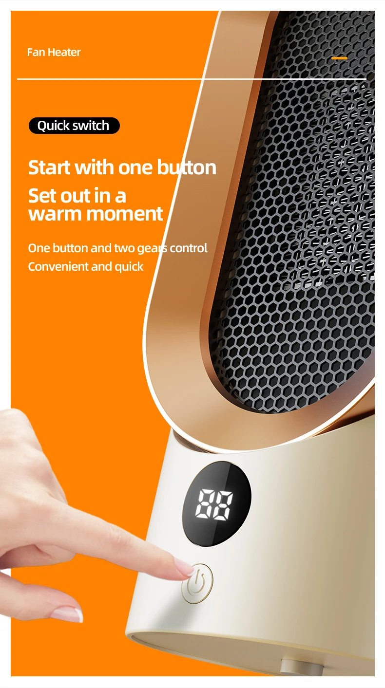 The heater adopts advanced ceramic heating elements, PTC heating plates, and aluminum sheets to quickly heat up. Gentle warm air and fast heating speed help you blink and resist the cold.