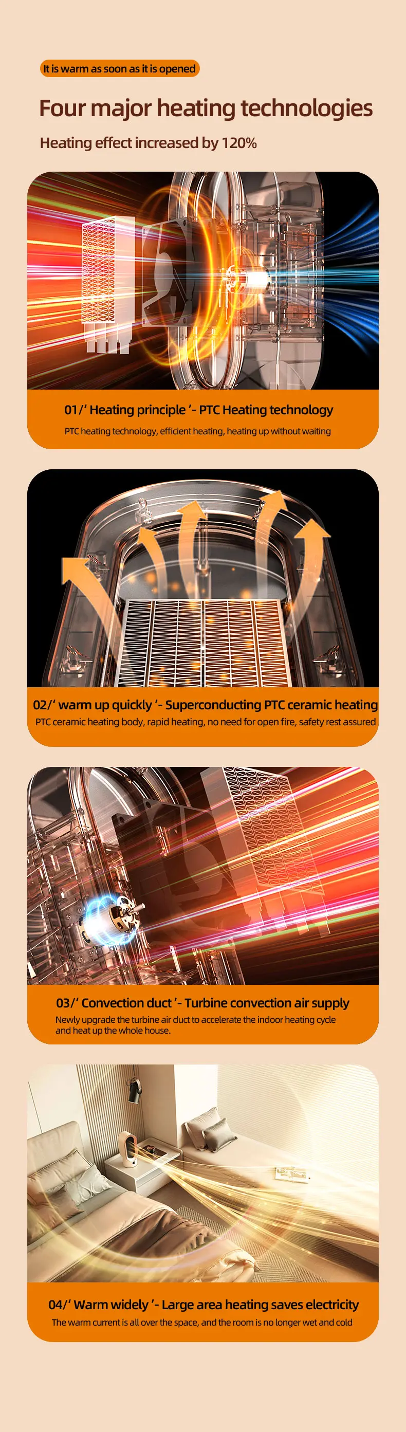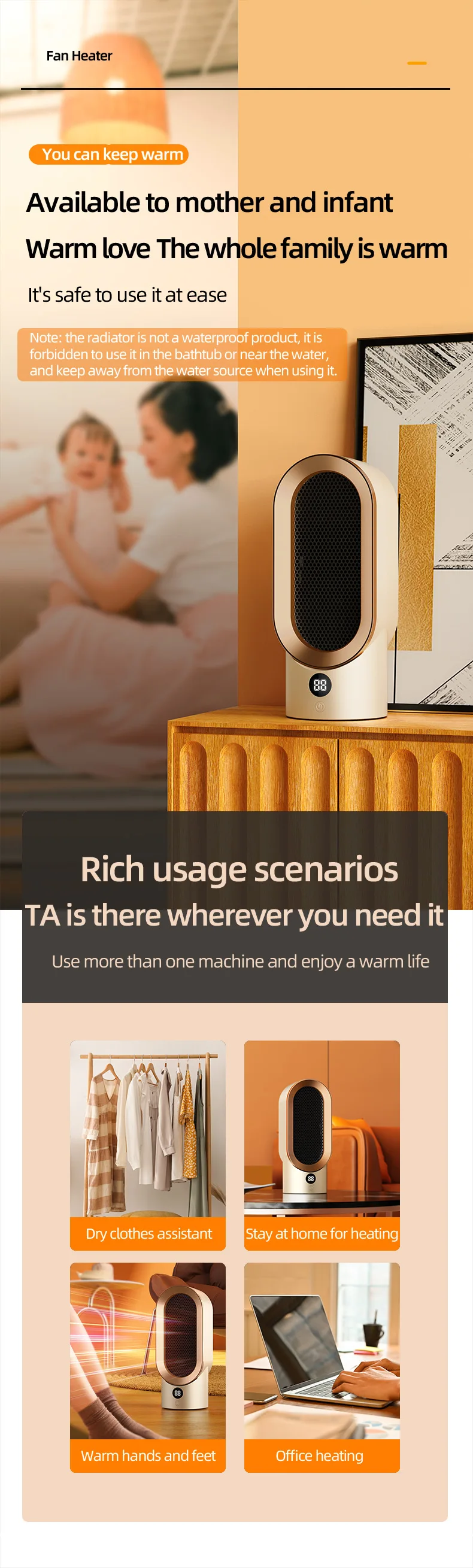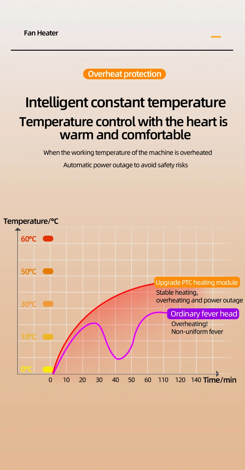 We have added advanced overheating protection sensors and intelligent flip switches, which can automatically turn off the heater when it overheats or flips over, ensuring the safety of you and your loved ones by your child or pet
