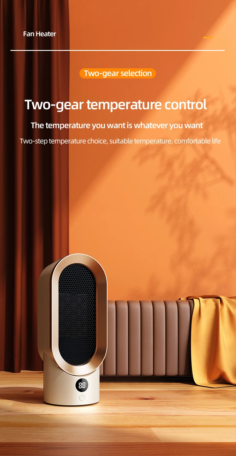 The ceramic fan heater has two gears, and you can choose the appropriate mode according to your needs to keep the room warm in cold weather.