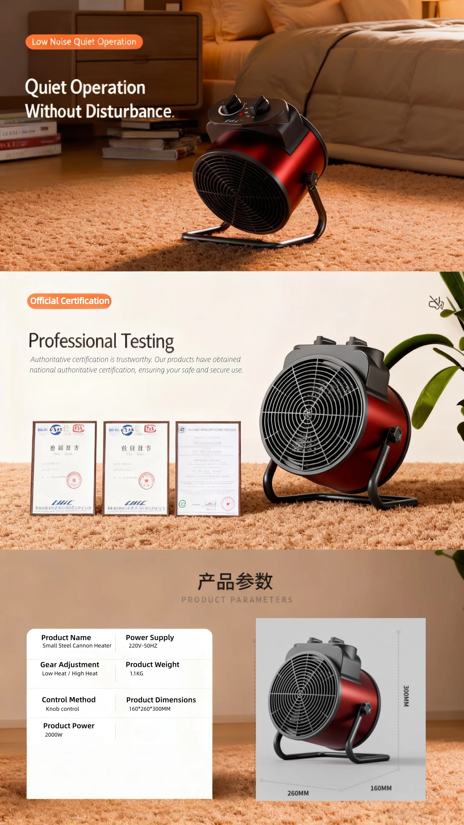Quiet Operation: Operates at less than 40dB, quieter than a library. Enjoy warm, comfortable air without disturbing your work, study, or sleep.