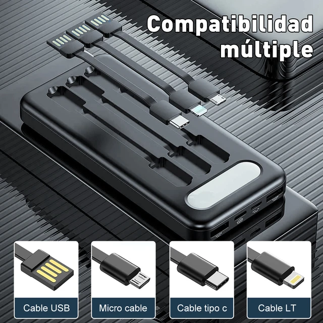 Portable Power Bank High Capacity Cable Charging Mini Powerbank for iPhone Samsung 2024