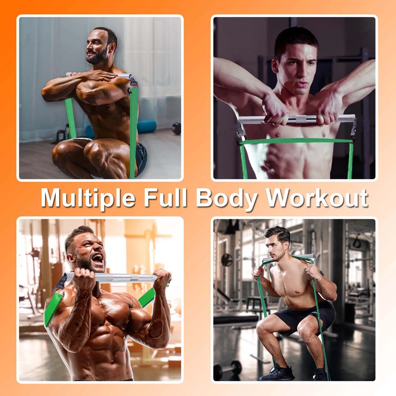 4.UPGRADED WORKOUT BANDS WITH HIGHER RESISTANCE — Resistance bands set that come with workout bar are made of eco-friendly natural rubber latex,strong and durable.