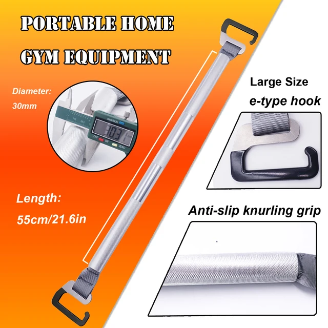 3.ALUMINUM ALLOY BAR :The resistance band bar is made of aluminum alloy with non-slip knurling, which is durable yet lightweight. The middle is passed through by the webbing, and the two ends can be rotated.