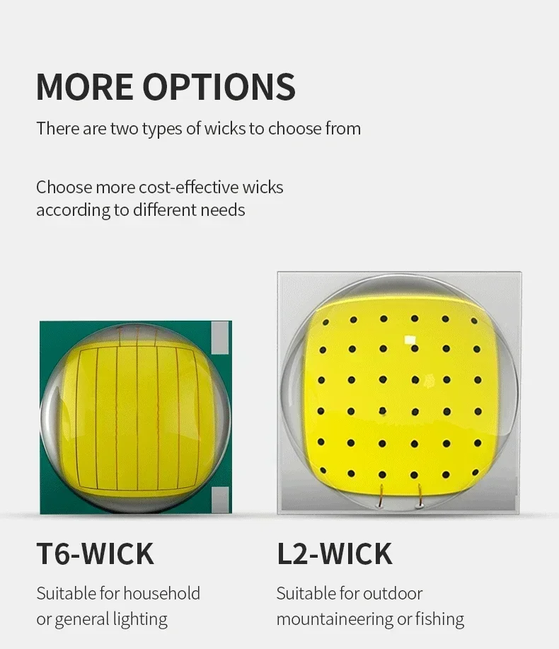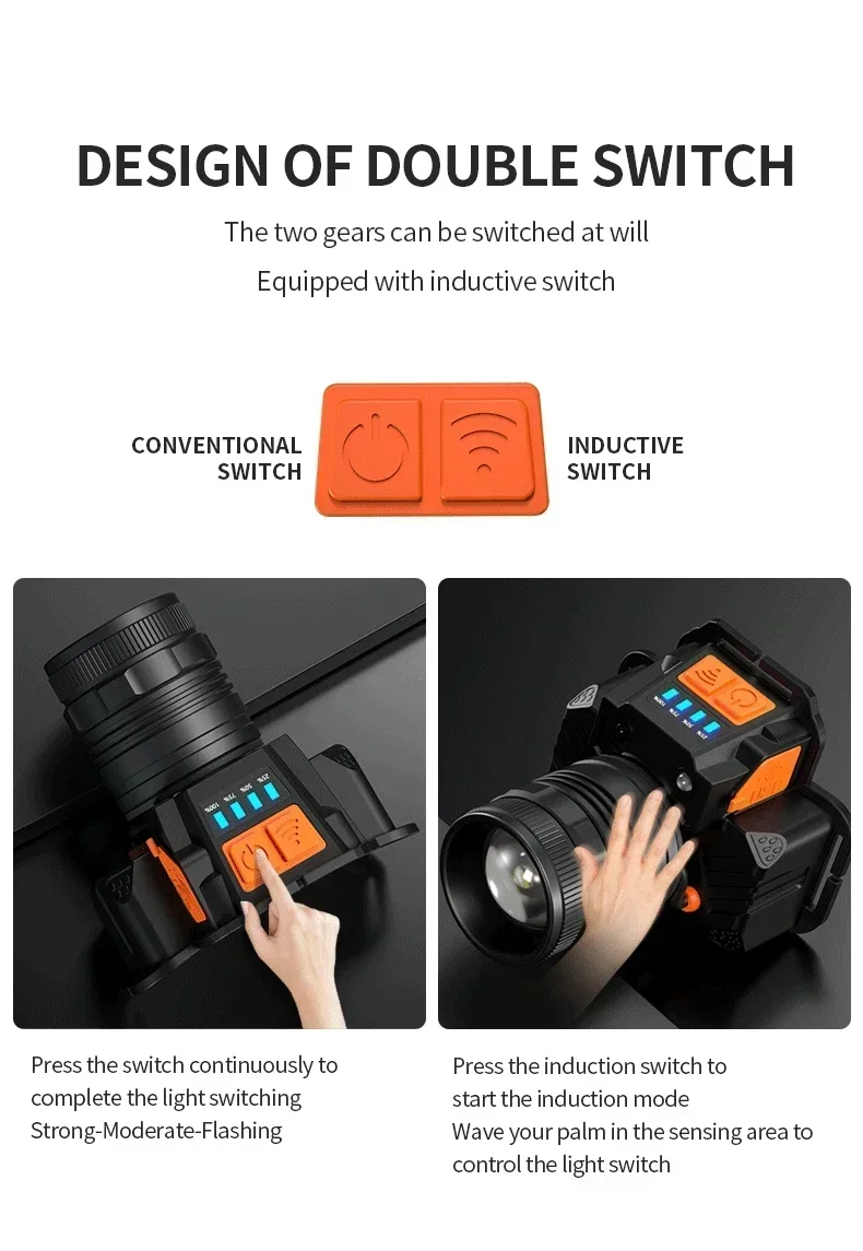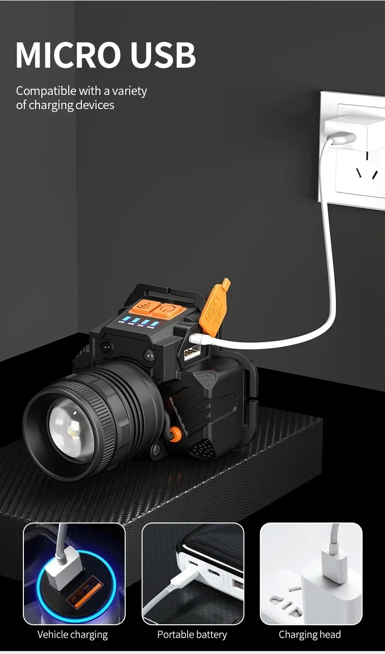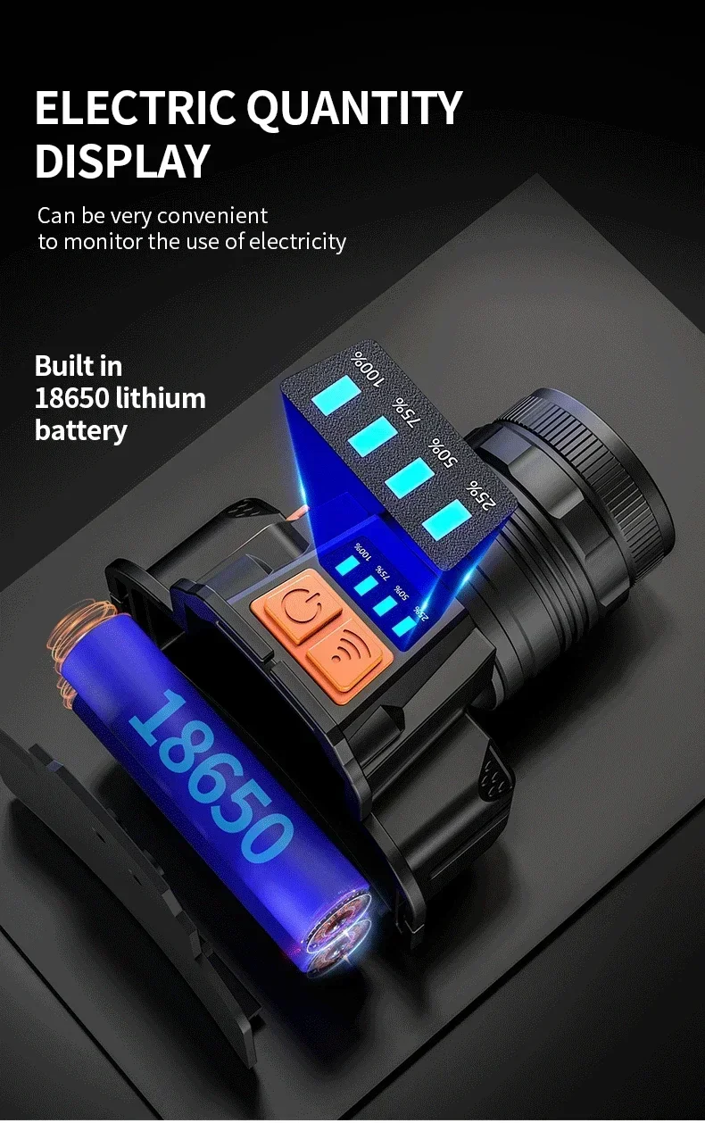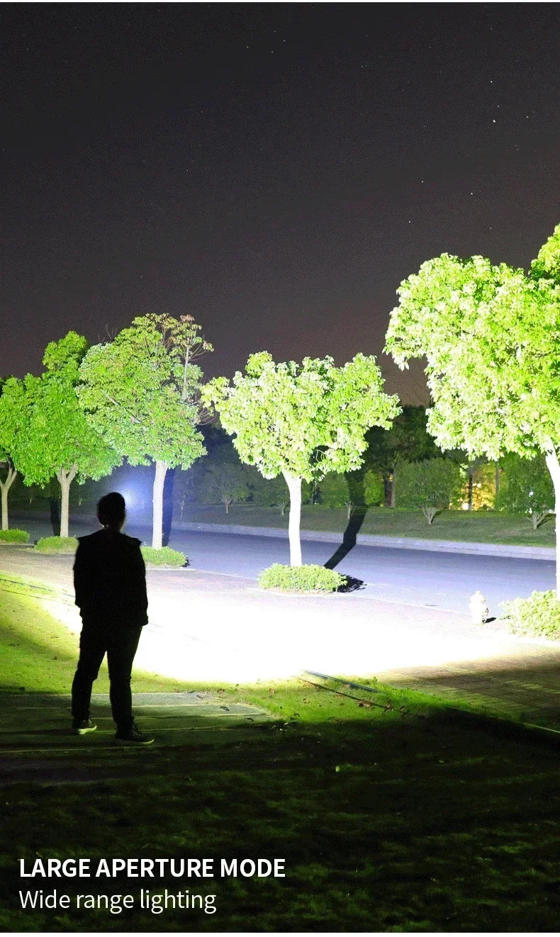 Smart T6 lamp wick, brightness upgrade, three gear free brightness adjustment, real large aperture light cup at the head, greatly improve the strong light remote ability, high-quality optical edge grinding glass lens is not easy to scratch, high-energy memoryless lithium ion battery, stable power supply, effectively prevent high and low unstable current.
