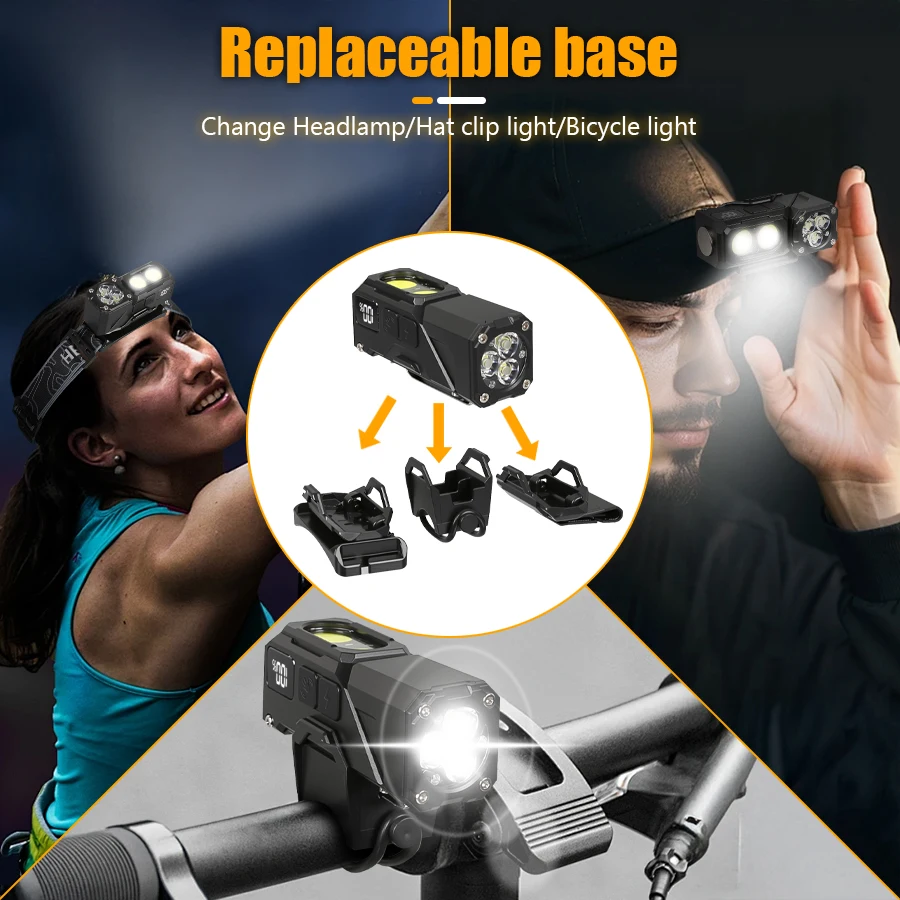Detachable & Replaceable Base: Switch between headlamp, hat clip light, and bicycle light with ease. Adapt to camping, outdoor exploration, cycling, or fishing scenarios in seconds.