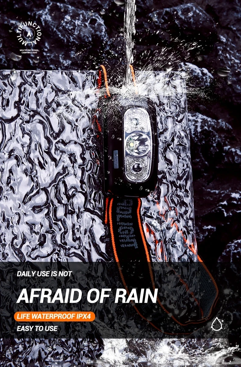 Package contains: sensor headlamp + retractable light belt + USB charging cable