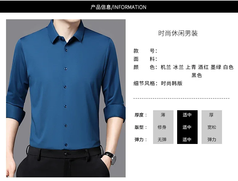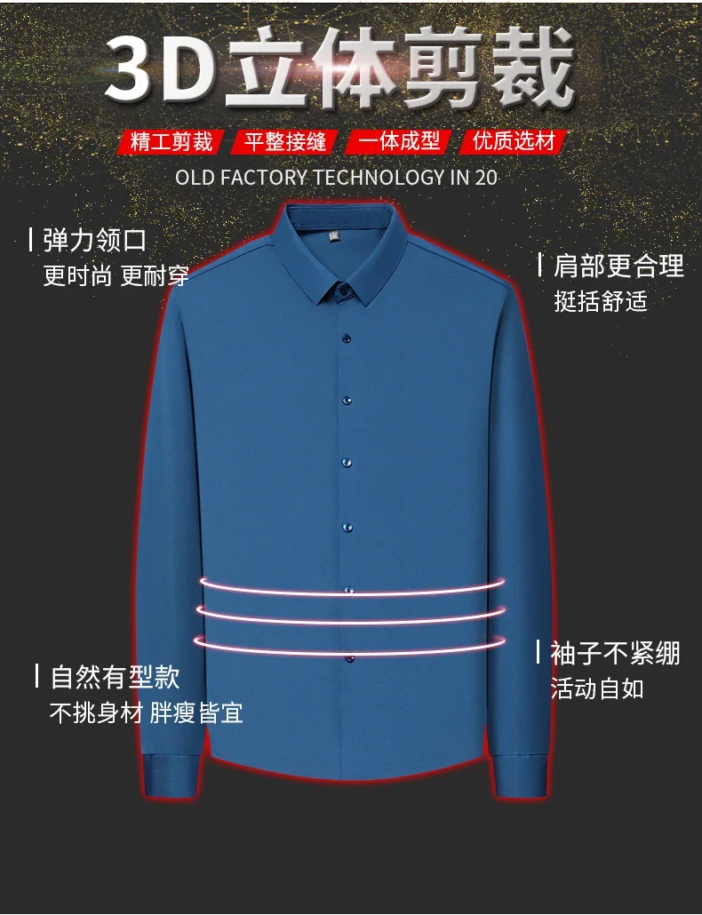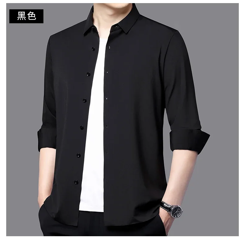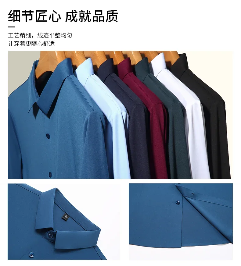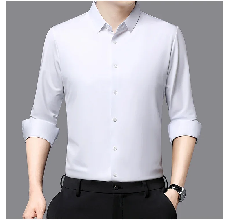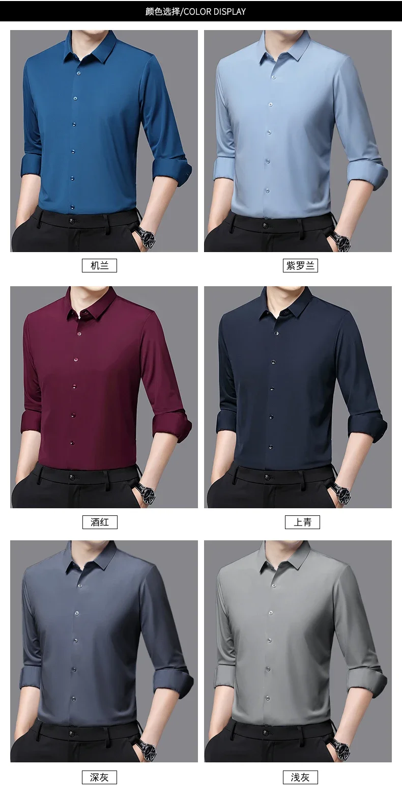 4-way Elastic Men Shirt Business Casual Long Sleeve Shirt Professional Formal Wear Urban Style Adult Suit