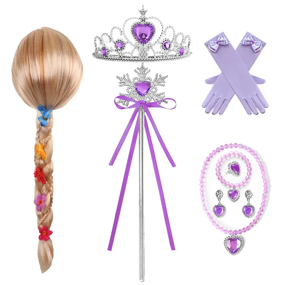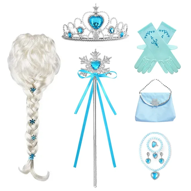 Princess Elsa Cosplay Accessories Gloves Wand Crown Jewelry Set Elsa Wig Braid For Snow Queen Princess