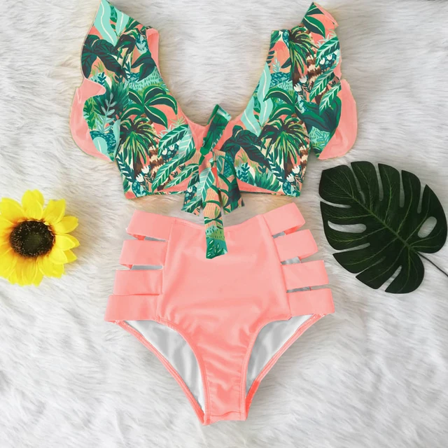Print Swimwear Women High Waist Bikini Ruffle Swimsuit Push Up Bikinis Set Bathing Suit Beach wear Summer