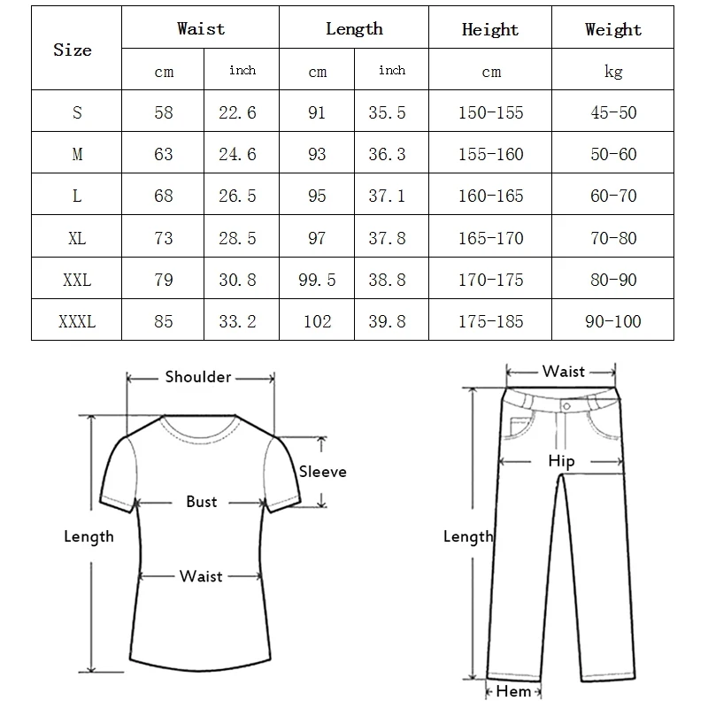 XXXL =Waist 85cm , Length 102cm, For Weight90-100 kg Height 175-185cm;