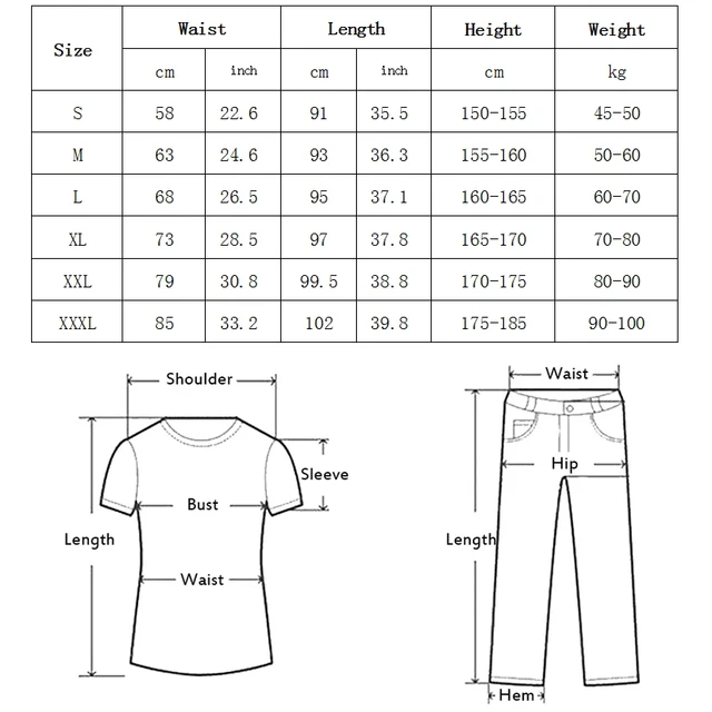 XXL =Waist 79cm , Length 99.5cm,For Weight 80-90kg Height 170-175cm;