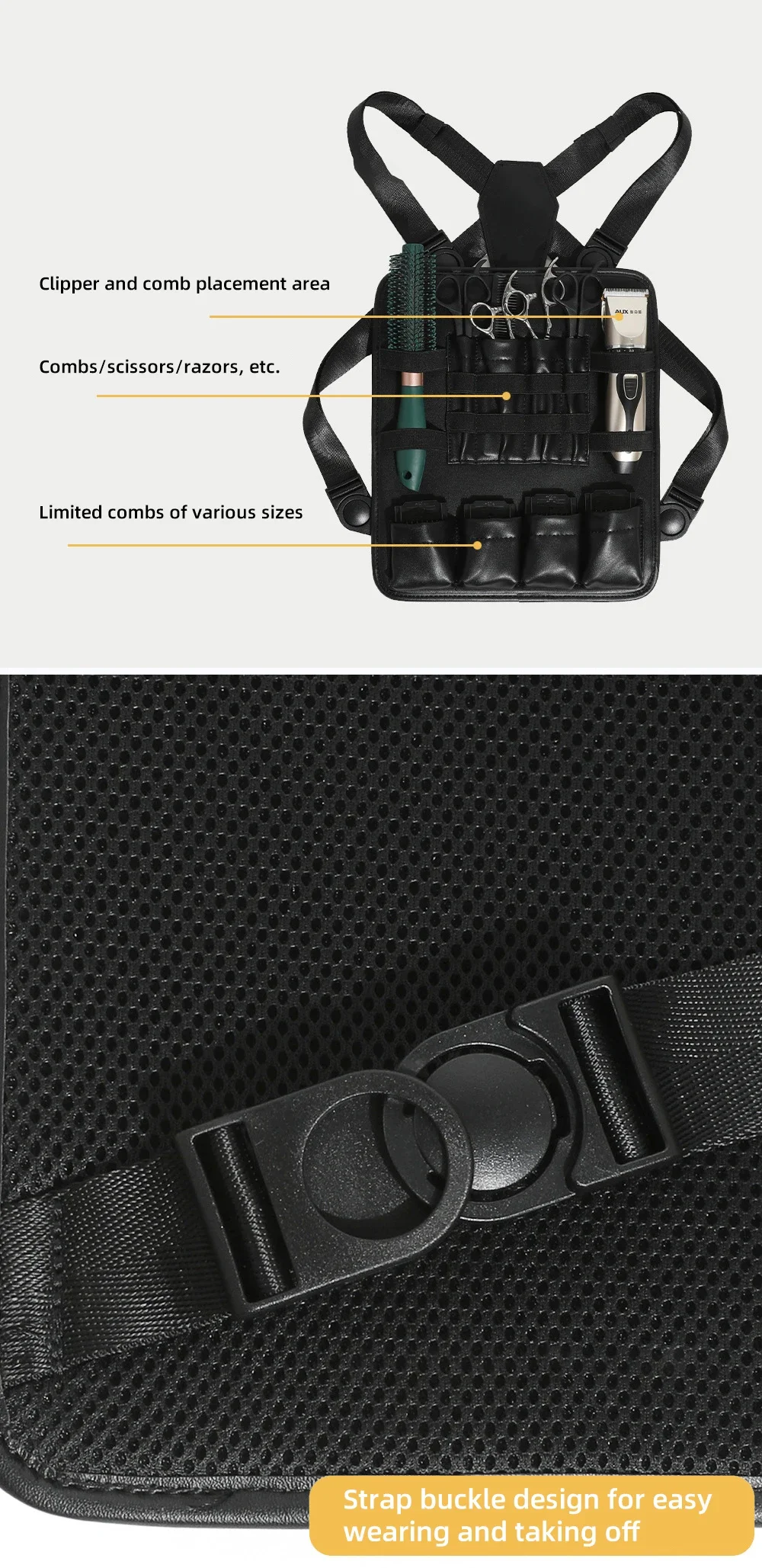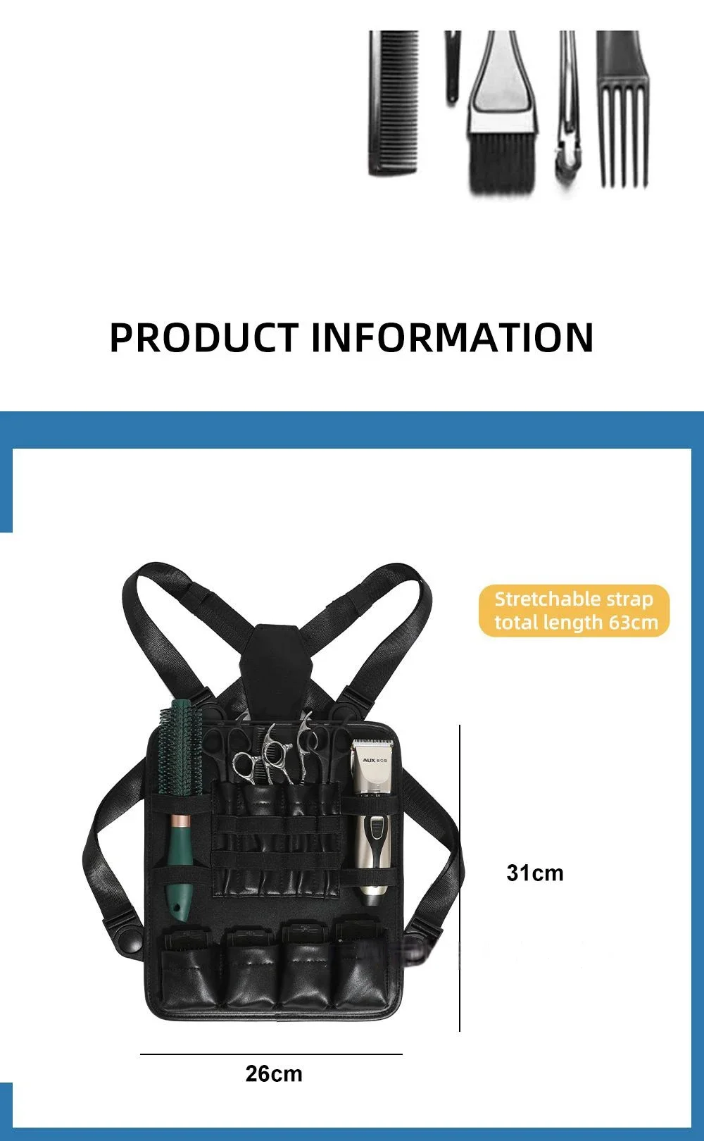 Professional Barber Multifunctional Tool Kit with Shoulder Strap Chest Bag Scissors Comb Bag Salon Home