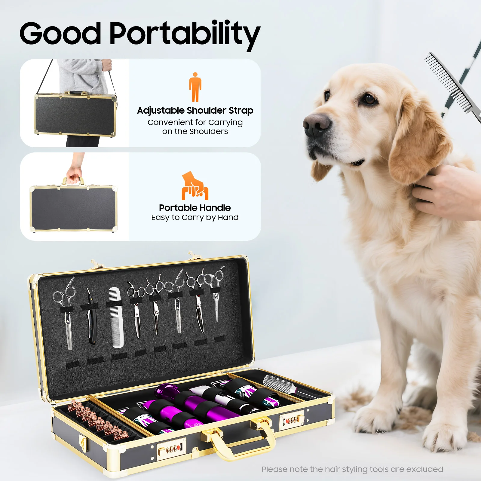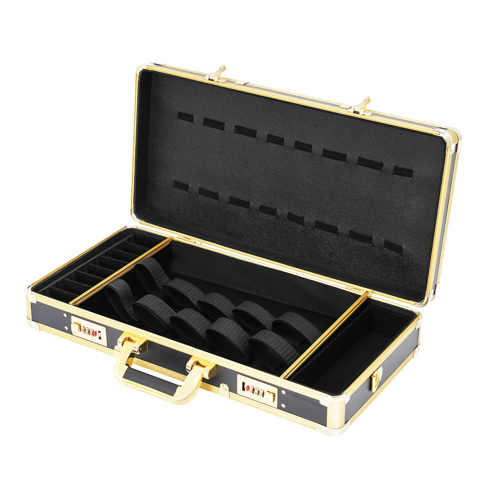 Meet the professional’s choice in tool organization. Crafted from premium aluminum alloy with sophisticated black and gold accents, this barber case blends luxury with durability. Its integrated password lock ensures your valuable clippers and trimmers are securely stored. The spacious, intelligently organized interior accommodates all essentials in a sleek, portable design perfect for the mobile stylist. More than a storage box—it’s a statement of your professionalism.