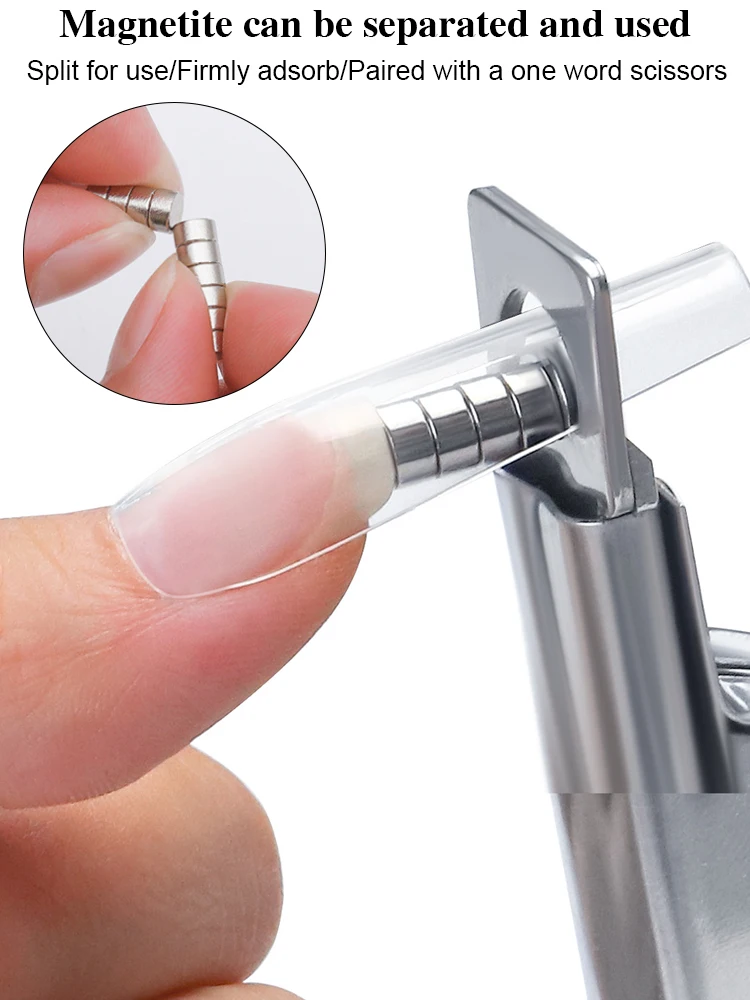 Adjustable-size acrylic nail clippers: Featuring 10 magnetic size adjustment plates, effortlessly achieve your desired length and shape, particularly suited for trimming long nails. Quickly and precisely trim nail tips, enhancing polishing efficiency and reducing buffing time.