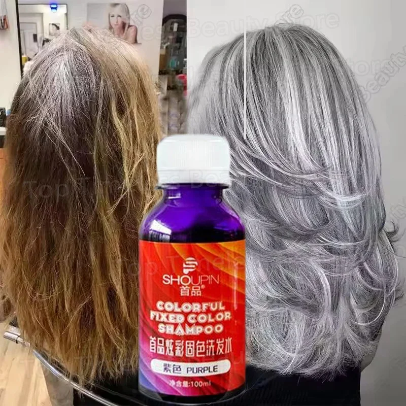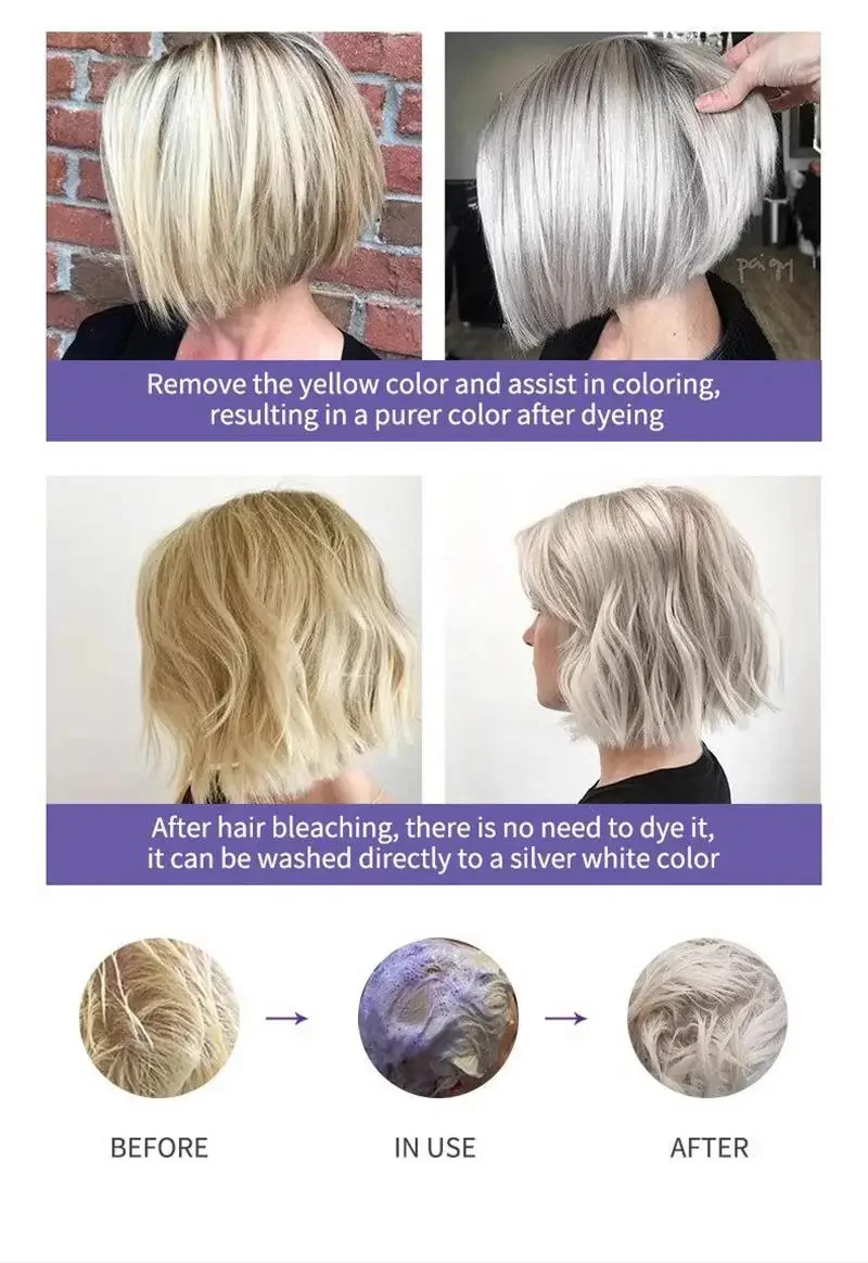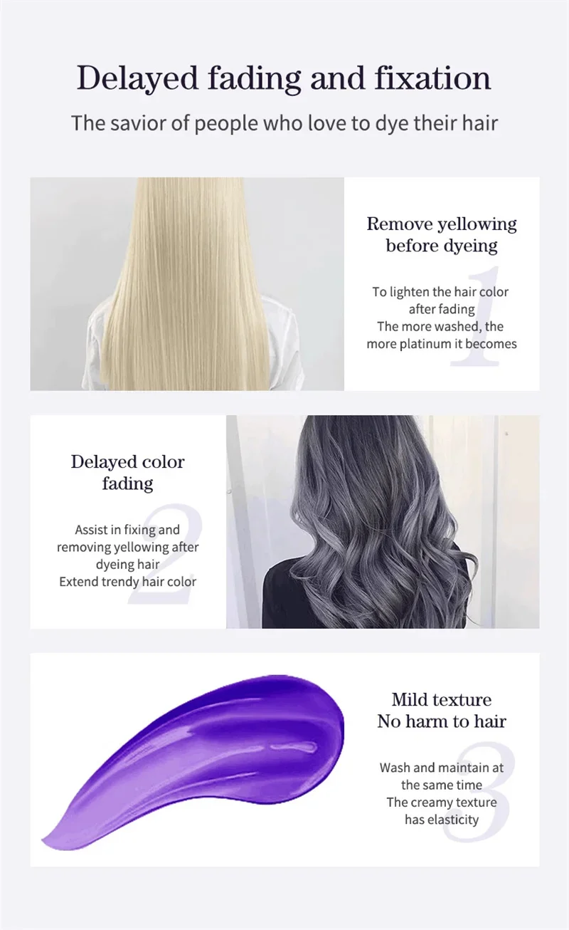 Gray Color Fixing Hair Dye Shampoo Cover Gray Hair Fade Yellow After Bleach Hair Shampoo Non-irritating Purple Shampoo