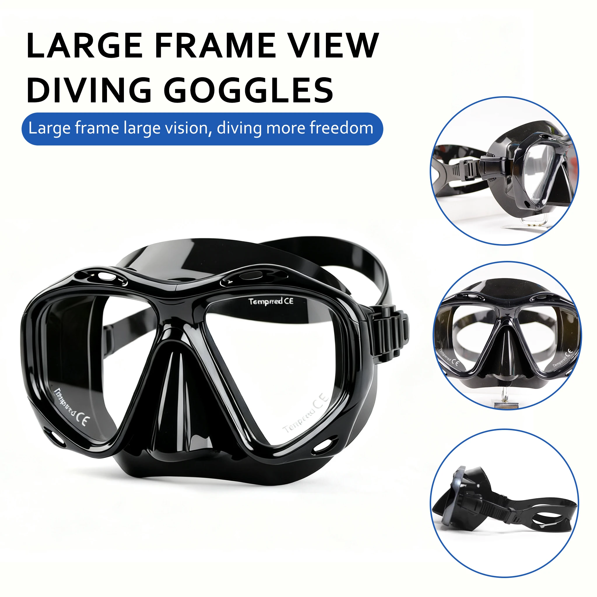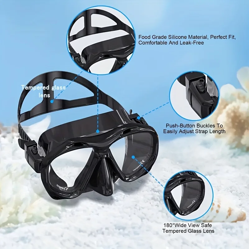 Professional Seal Tempered Glass Goggles Diving Scuba Mask Adult HD Large Frame Fashion Silicone Swimming